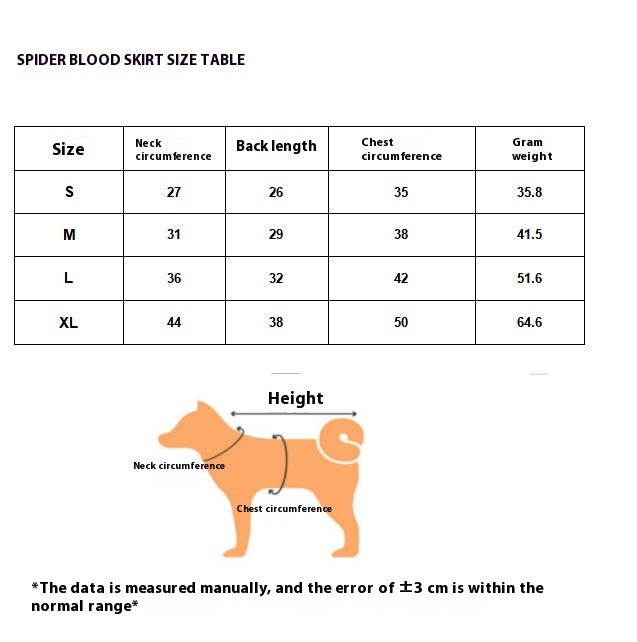 Color: Spider blood skirt, spider blood four legs pet clothing