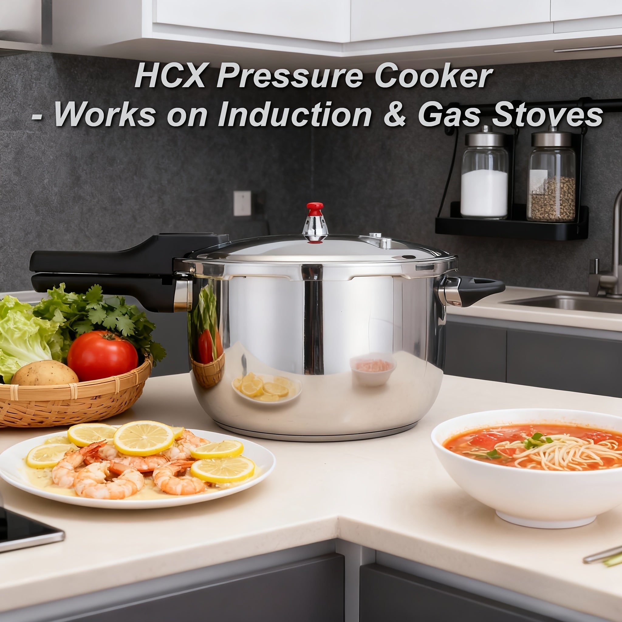 HCX 32cm Pressure Cooker with Thickened Composite Base, Heat-Resistant Handle & Safety Valve