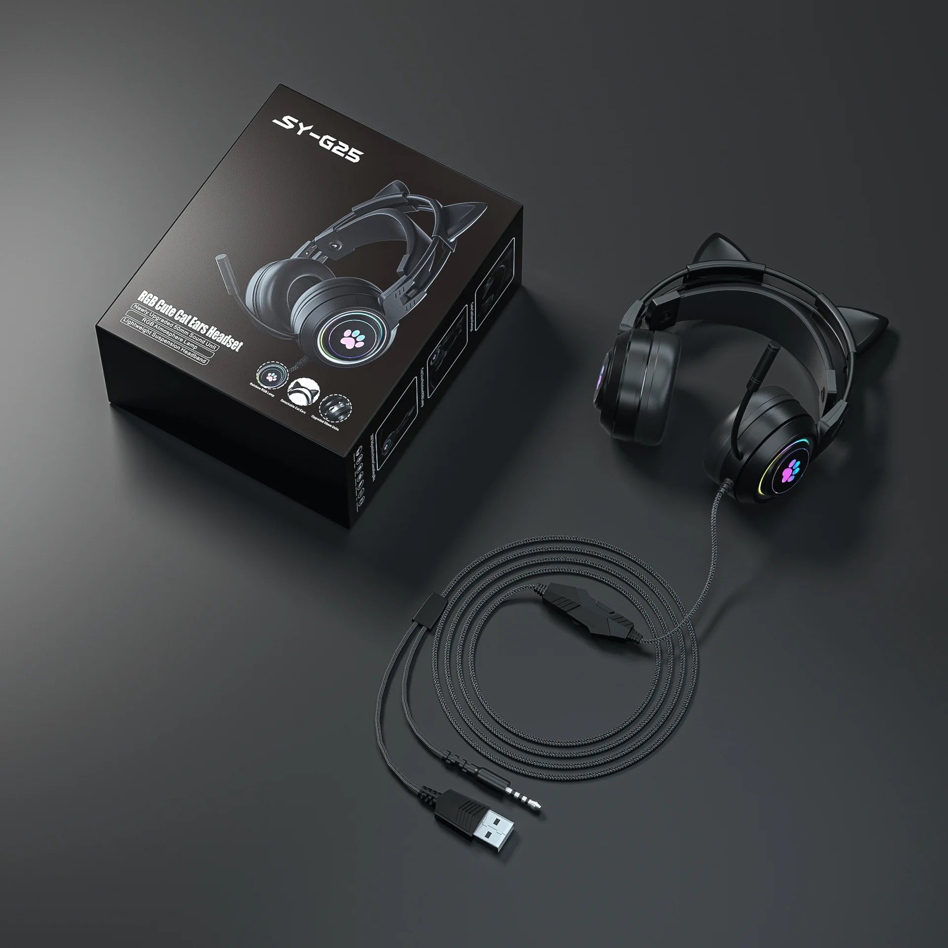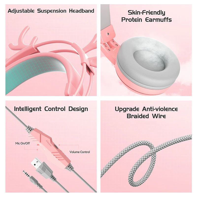 headphone gaming wired Girl specific cute deer cat ear Passive Noise Cancelling SY-G25 LZ-1