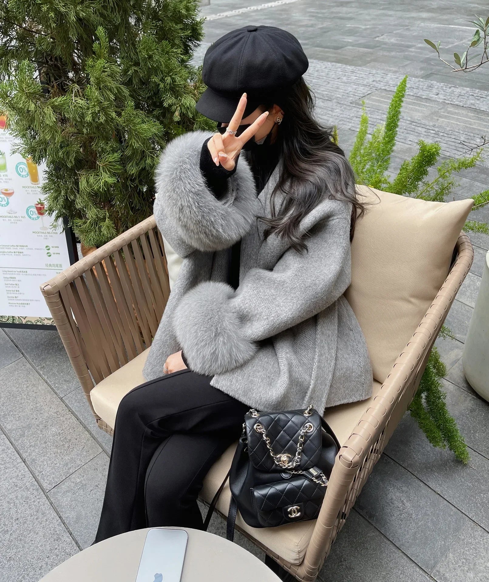 High End Double-sided Wool Strapping Real Wool Fur Coat Women's Removable Cuffs Fox Fur Temperament Cashmere Short Jacket