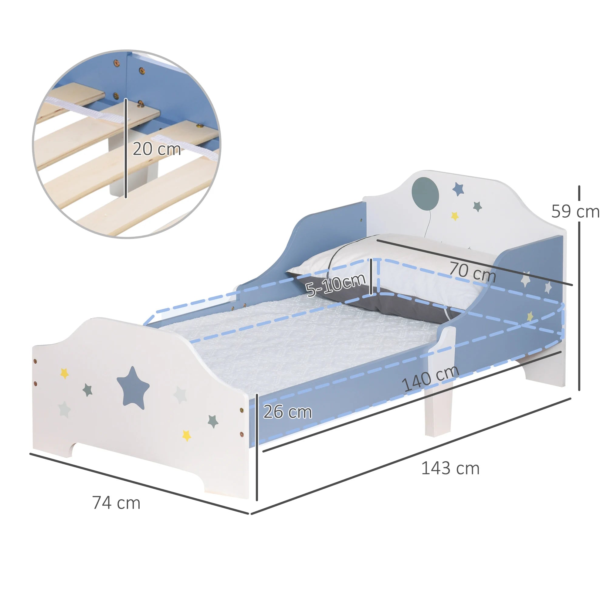 3 years 143x74x59 cm children's bed with blue stars Print