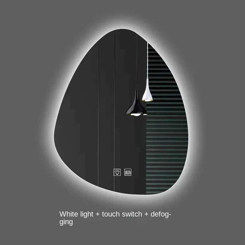 Hotel Cloakroom Vertical Irregular Bathroom Mirror Smart 3 Colors Adjustable LED Multifunction Light with Bluetooth Speaker