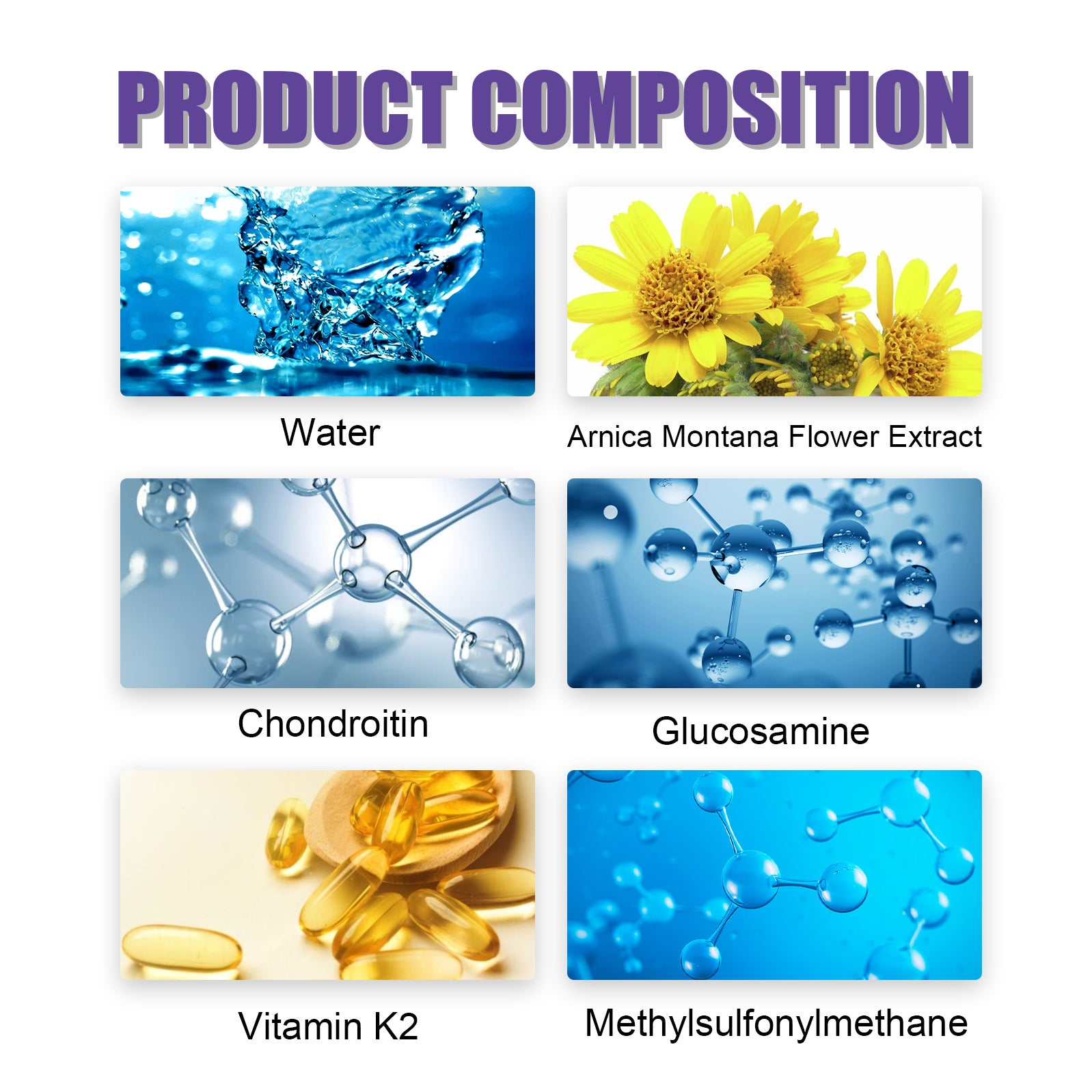 Our Joint Recovery Care Cream contains glucosamine, Arnica flower extract, methyl sulfonyl methane. It can help reduce inflammation, nourish joints, and improve mobility. Helps rebuild and restore cartilage and bone tissue. It also reduces pain and stiffness. Its use method is very simple: clean and dry the skin of the joint, apply an appropriate amount of this product evenly on the joint and massage gently with your hand to make the skin absorb. Long-term relief of arthritis-related pain Joint soreness, muscle soreness restless legs, bruises, sprains, back pain, etc., for pain relief.