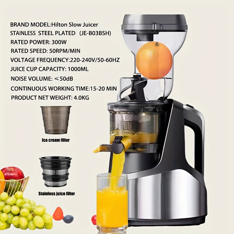 Juicer, 300W Slow Masticating Machines with Large Feed Chute Fit Whole Fruits