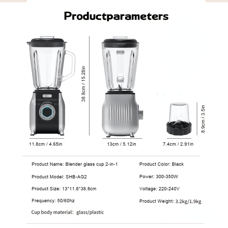 Juicer And Blender for Home Kitchens, Equipped with a 1.5L Glass Jar, a Plastic Cup,