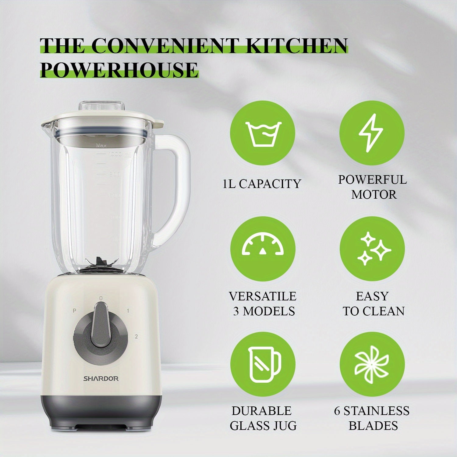 Juicer Blender 700W Fruit and Vegetable Blender Smoothie Maker with 6 Stainless Steel Blades, 1L