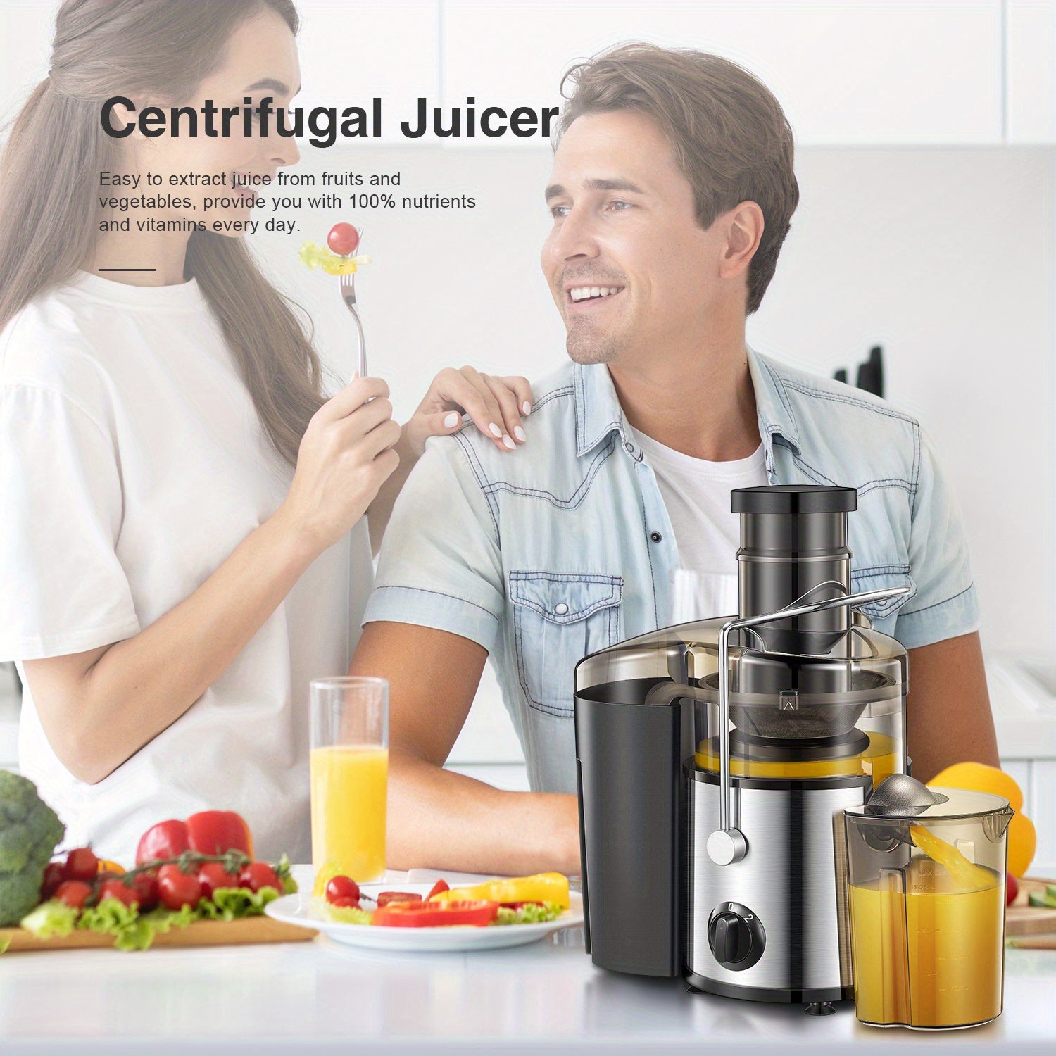 Juicer Machine, 500W Centrifugal Juicer Extractor with 3 Wide Mouth Feed Chute for Fruits and Vegetables