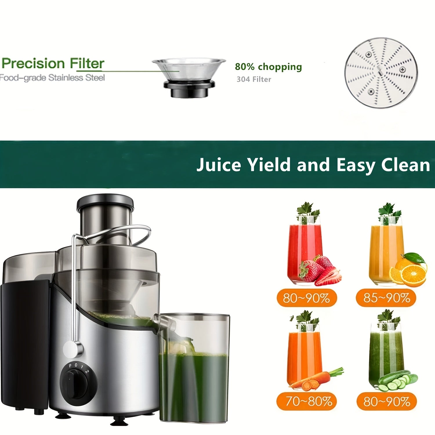 Juicer Vegetables And Fruit, Max 800W Juicer Machine Made of Stainless Steel with 3 Speed Levels