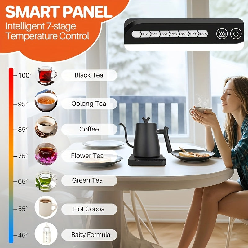 Kettle with Gooseneck Design, Adjustable Temperature Settings, 7 Predefined Temperatures