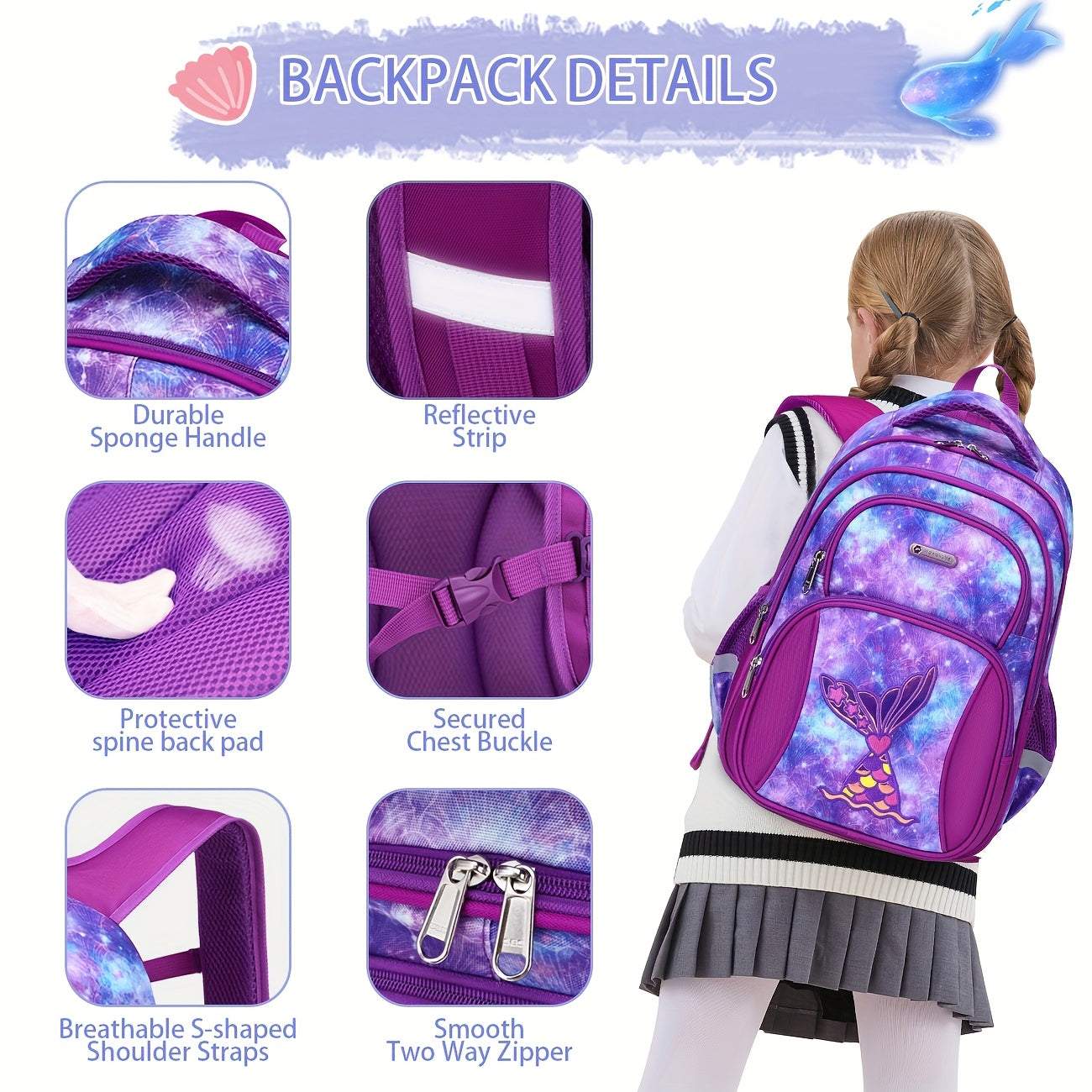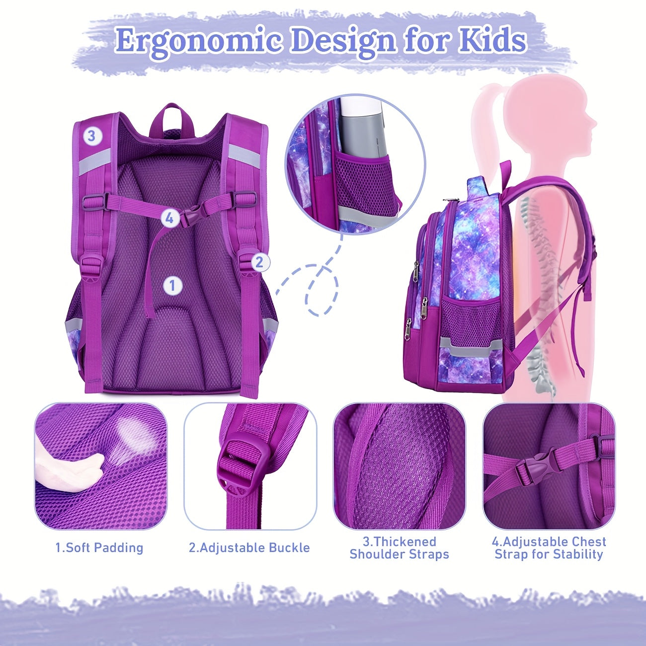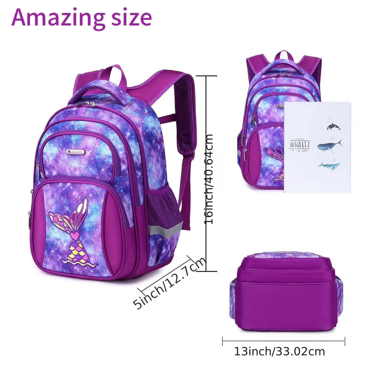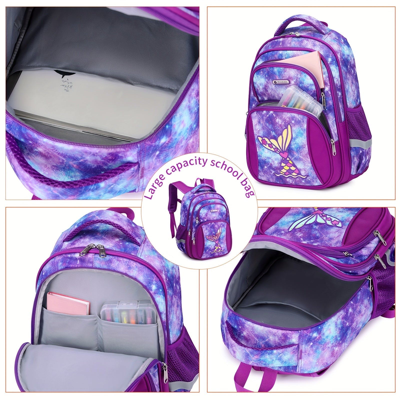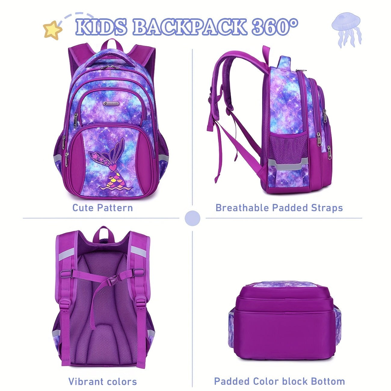 Kids' Backpack, Cute Cartoon Korean Style, Multi-Layer Lightweight Durable, Polyester Lined