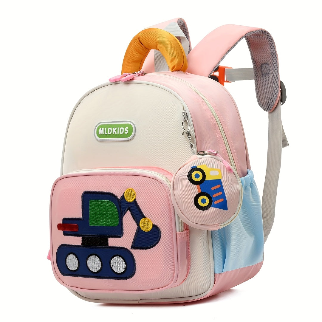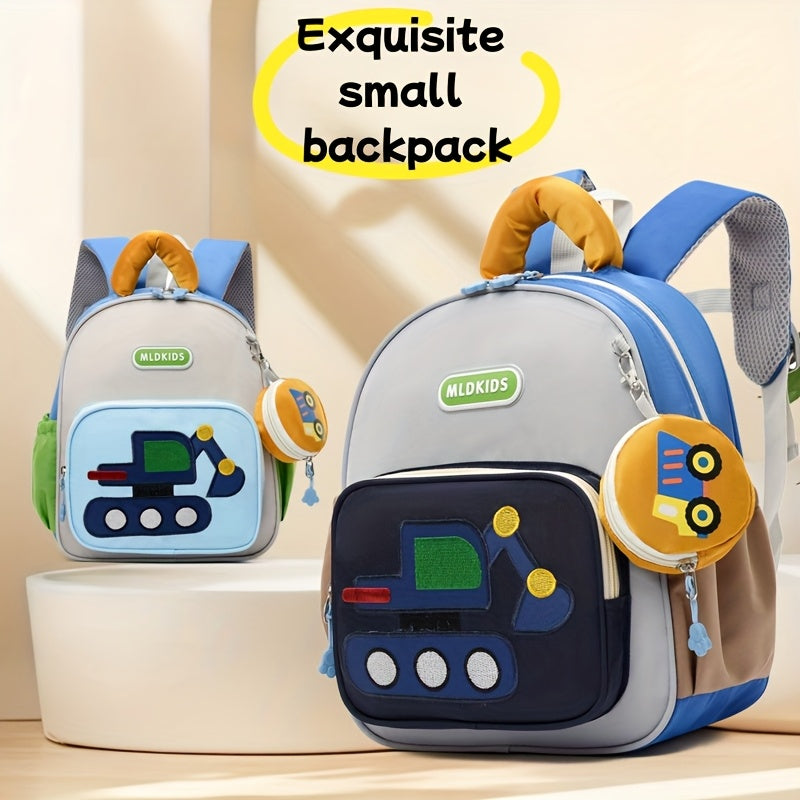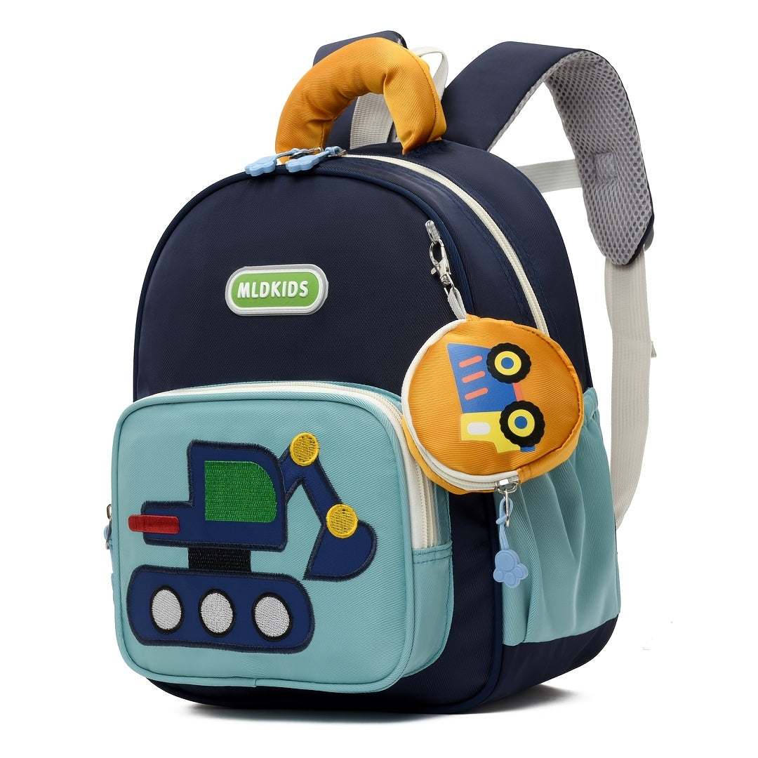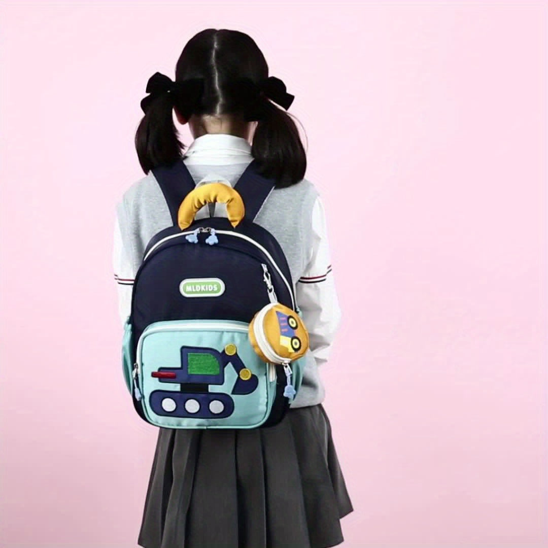 Kids' Cartoon Construction Vehicle Backpack Adjustable Straps, Lightweight,
