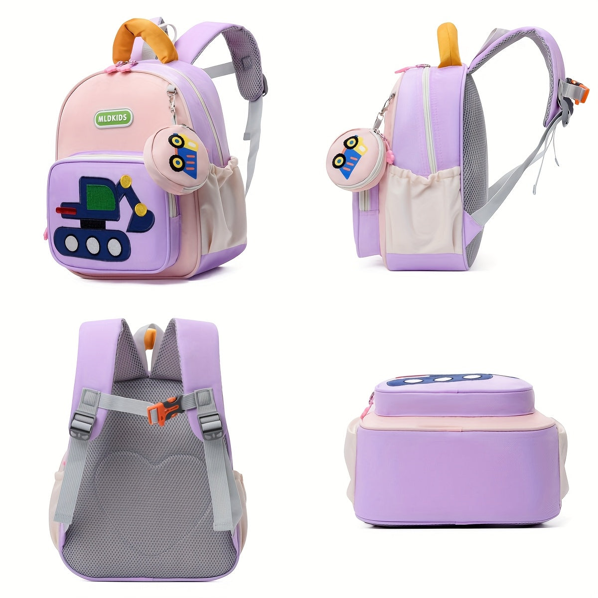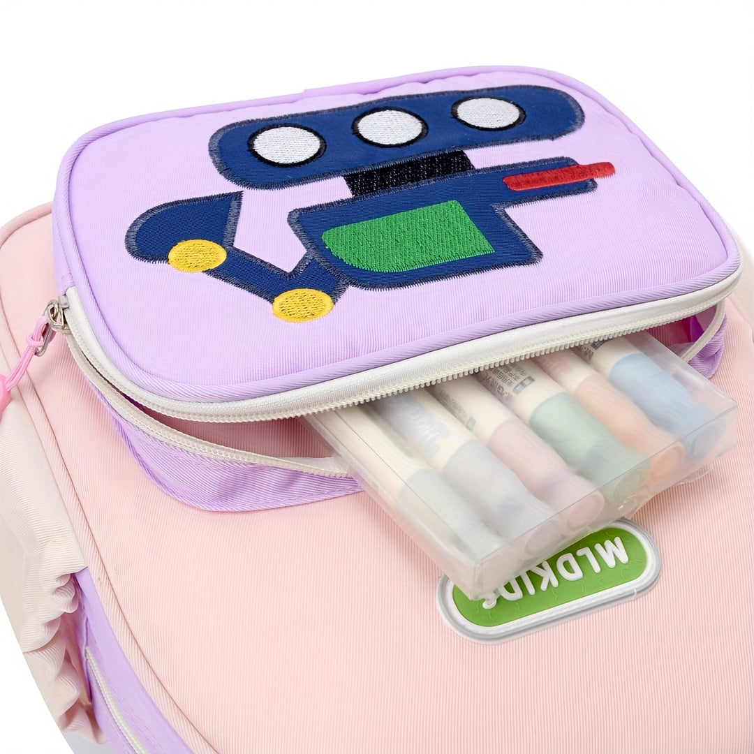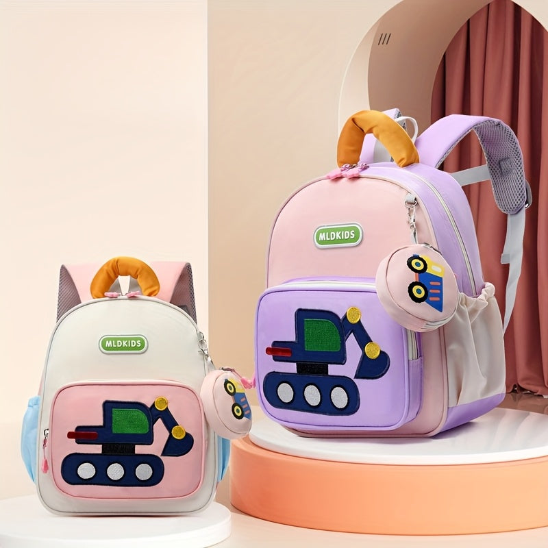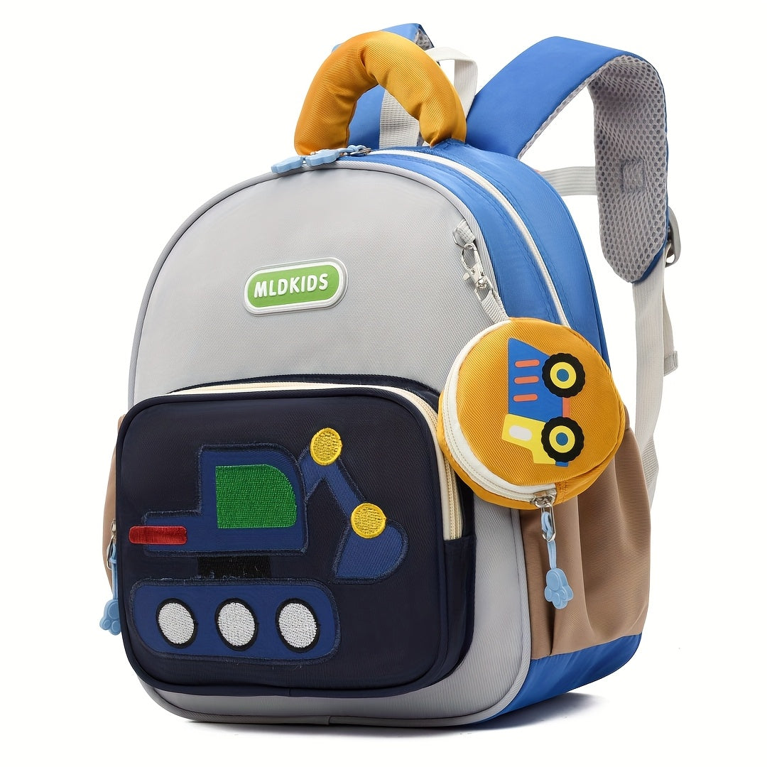 Kids' Cartoon Construction Vehicle Backpack Adjustable Straps, Lightweight,