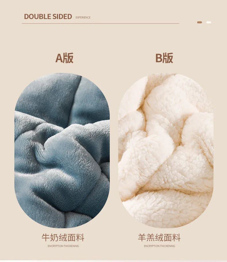 Lamb Wool Blanket Winter Double-sided Three-layer Quilted Blanket Skin-friendly Cozy Warm Bed Cover Blanket