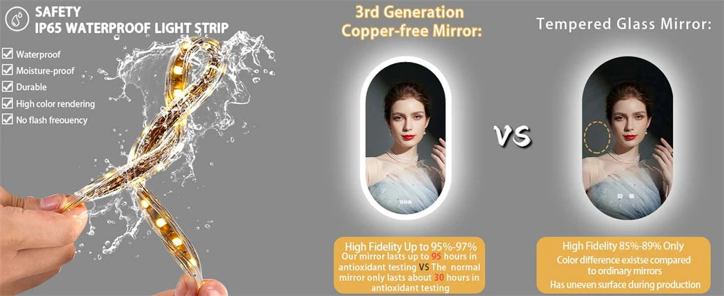 Large Wall Mirror 48 x 24" LED Bathroom Mirror Oblong Backlit Smart Mirror Dimmable 3 Colors with Anti-Fog- IP65 CRI95