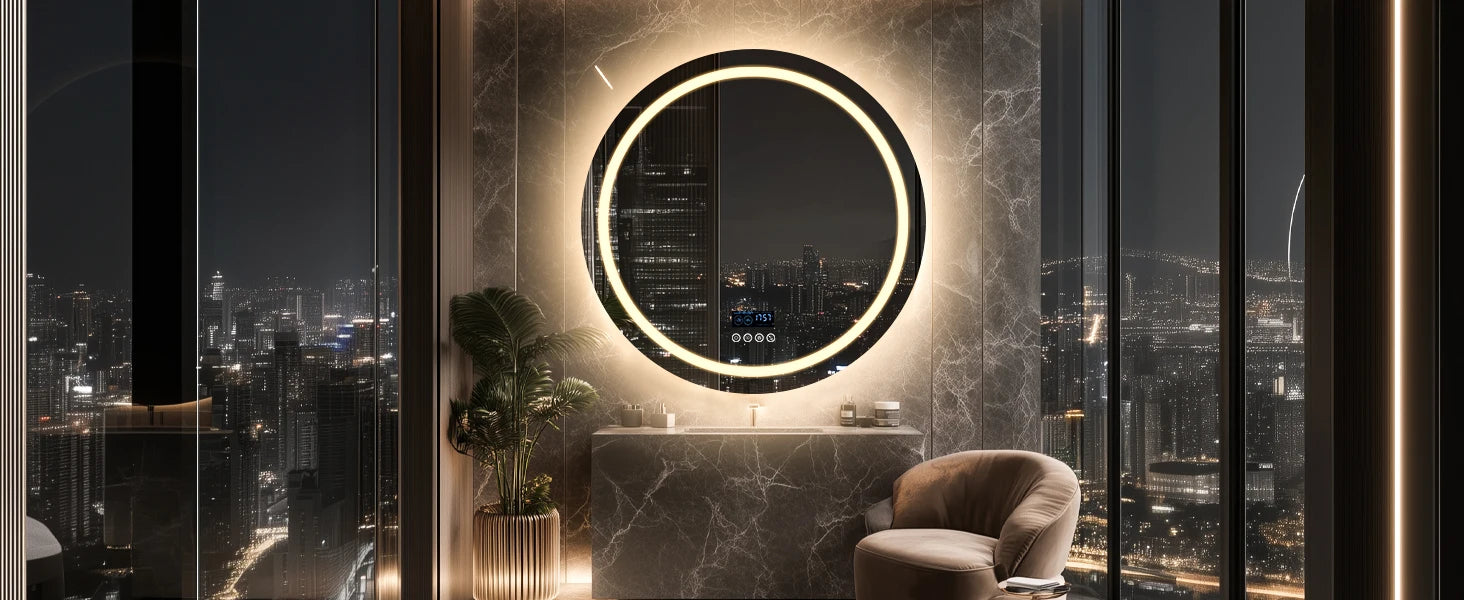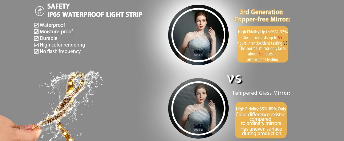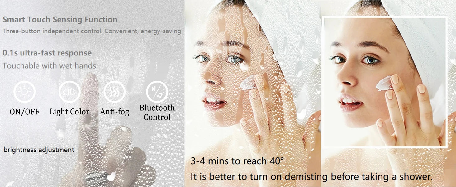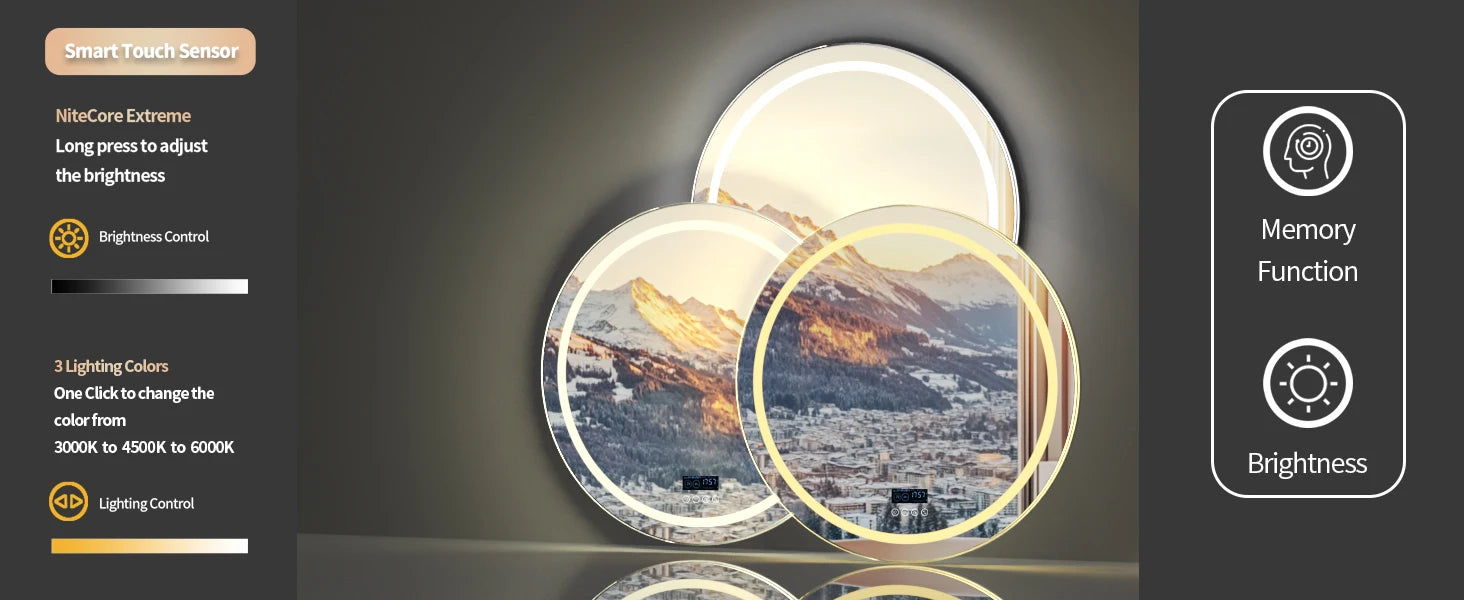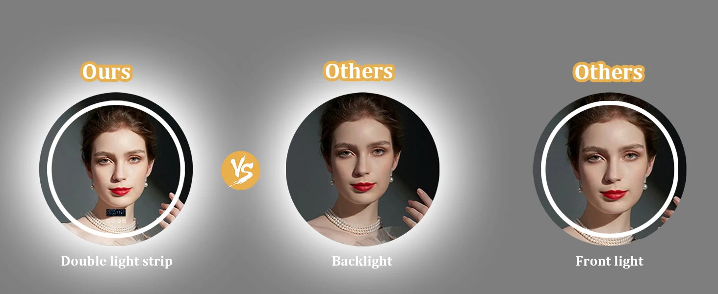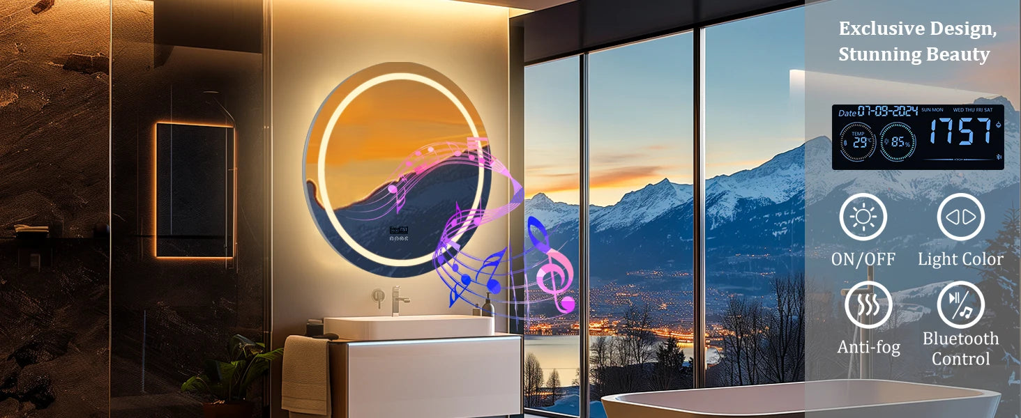 LED Bathroom Mirror 800mm Round Wall Mirror Bluetooth Colour Dimmable Front+Backlit Anti-fog Memory Time Temperature Display