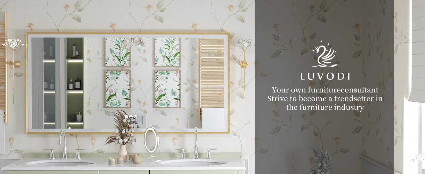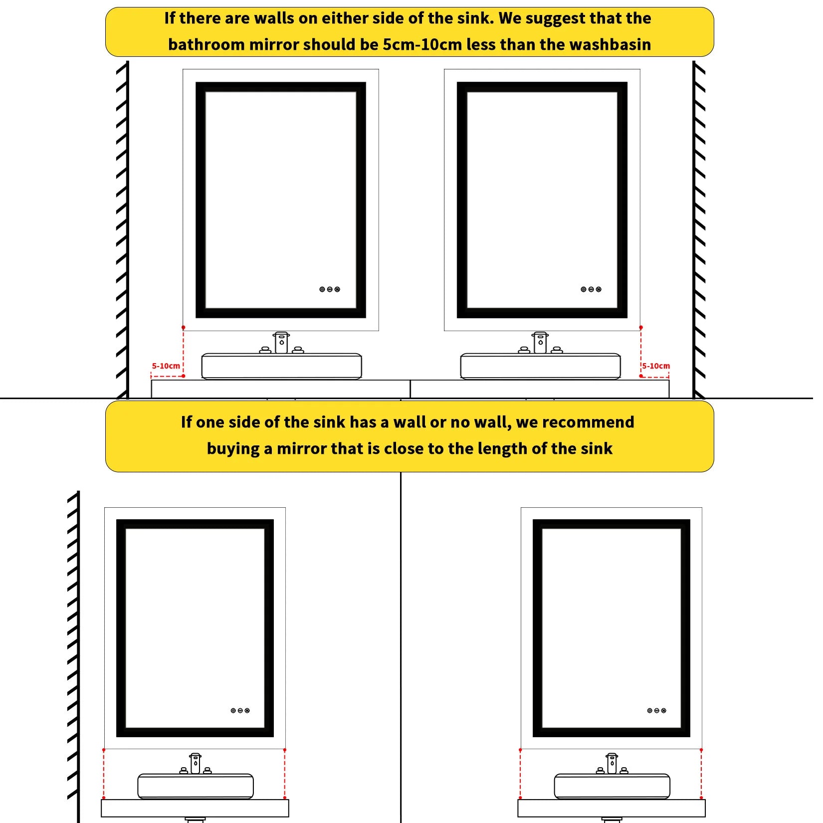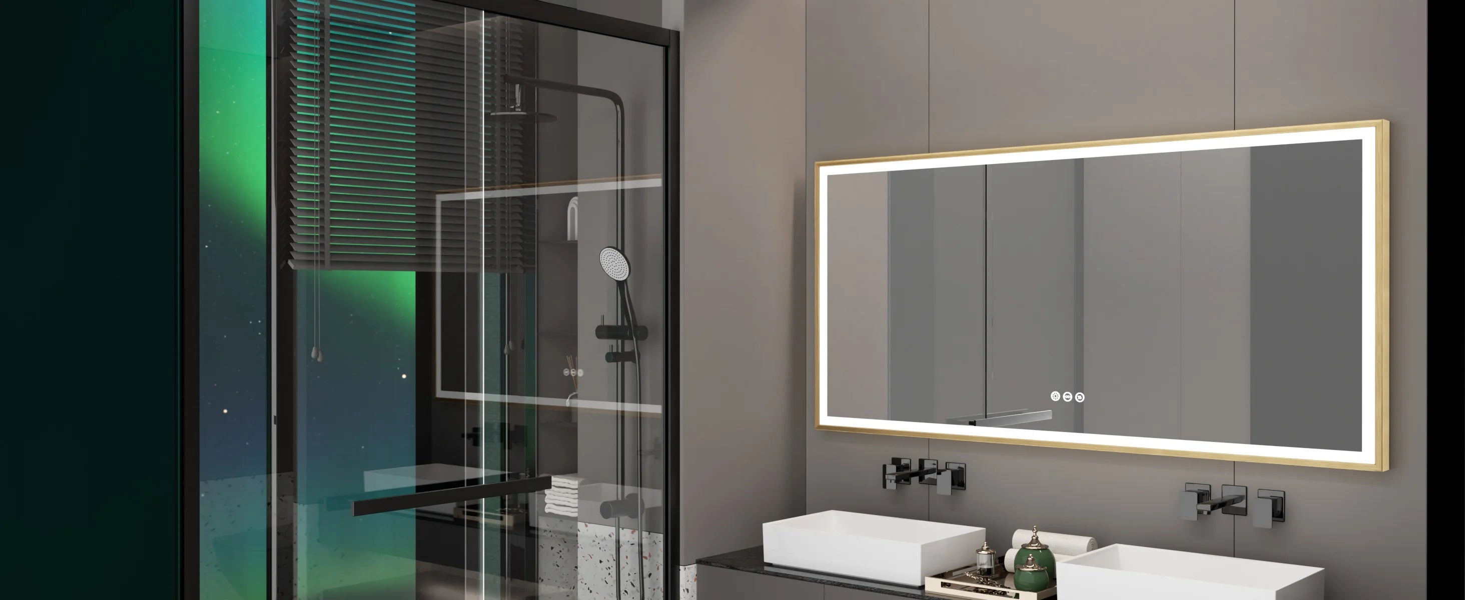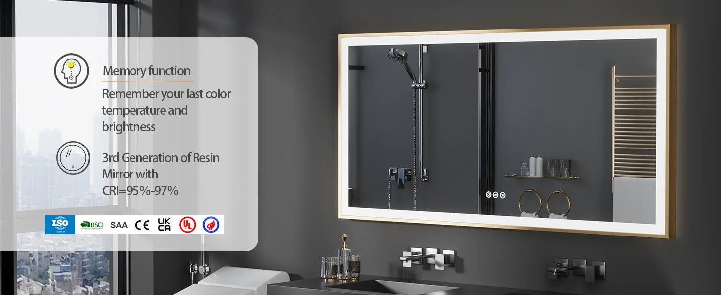 LED Bathroom Vanity Mirror Gold Frame Front Lighted Aluminum Rectangle Beveled Edge Tricolors Stepless Dimmable