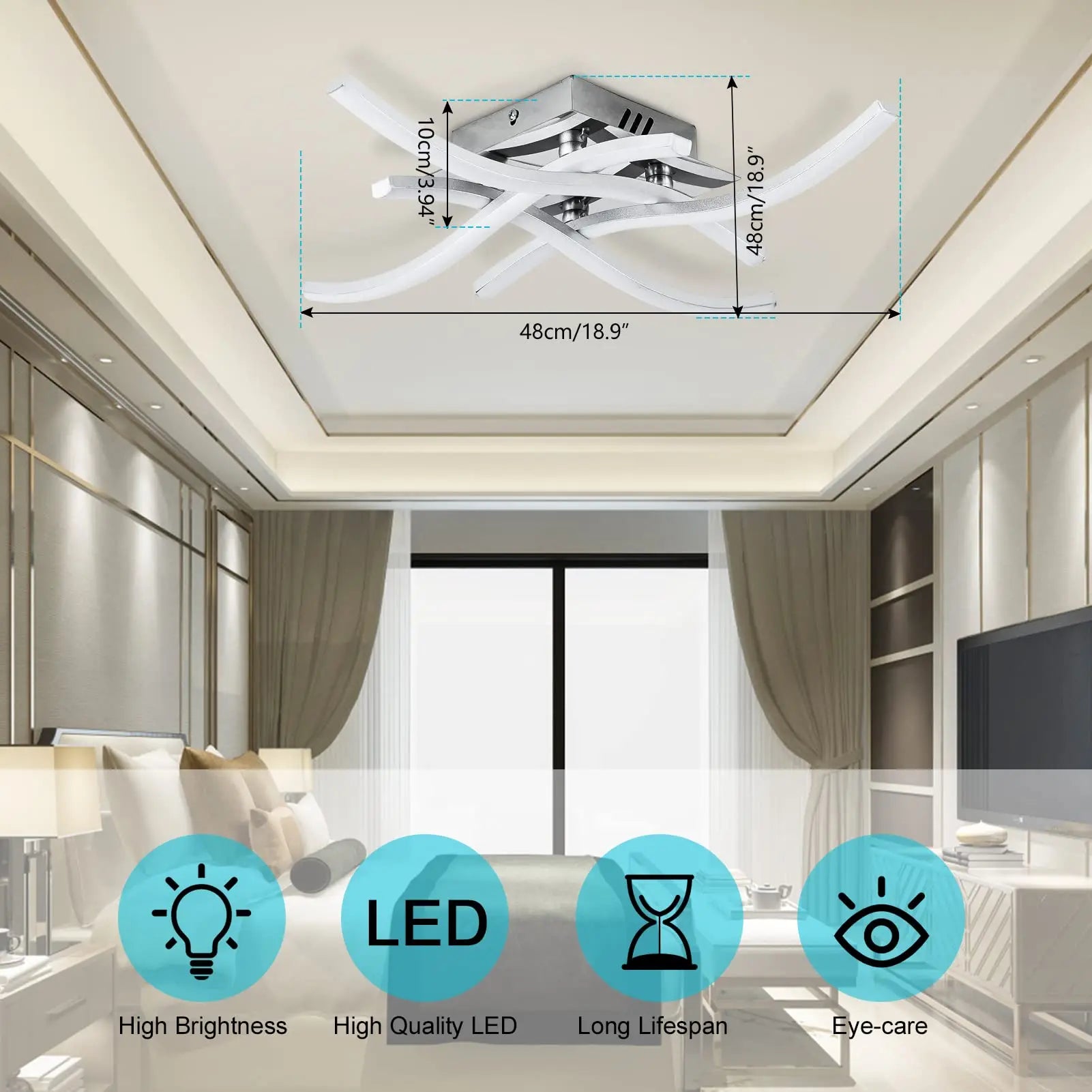 LED Ceiling Light, 27W Ceiling Light,6000K Cold White,4 Built-in LED Boards,Modern Curved Ceiling Light for Living Room,Bedroom
