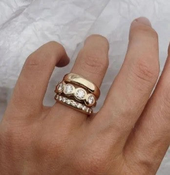 Light Luxury Antique Style Micro-inlaid Zircon Rhinestone Ring 3 Combinations High Sense