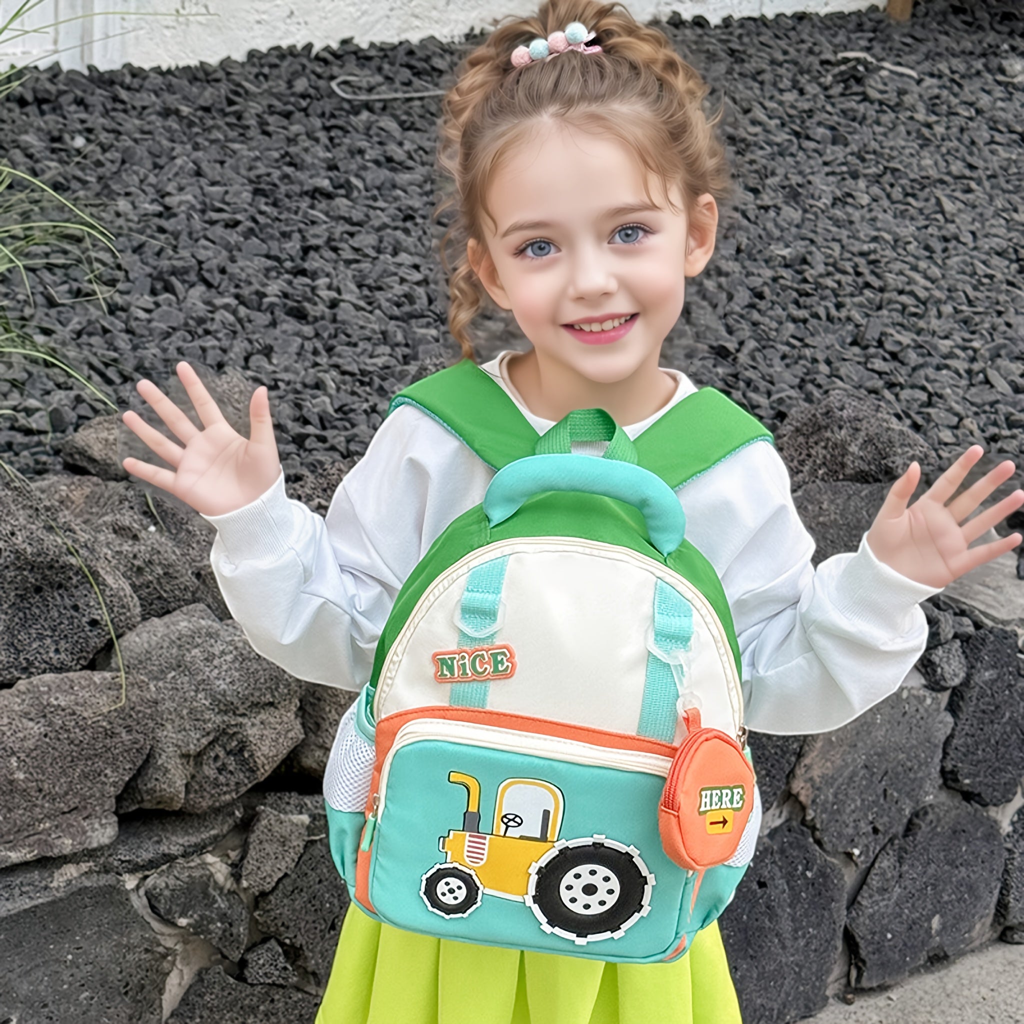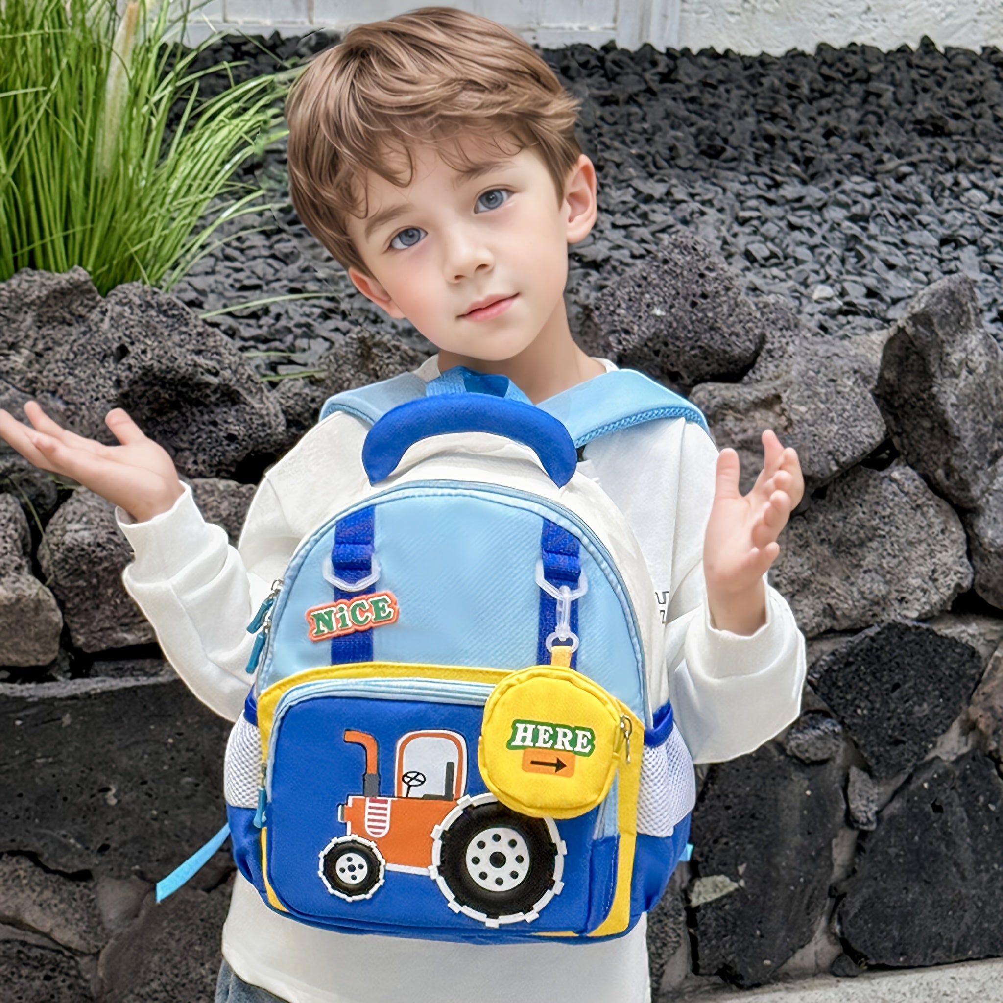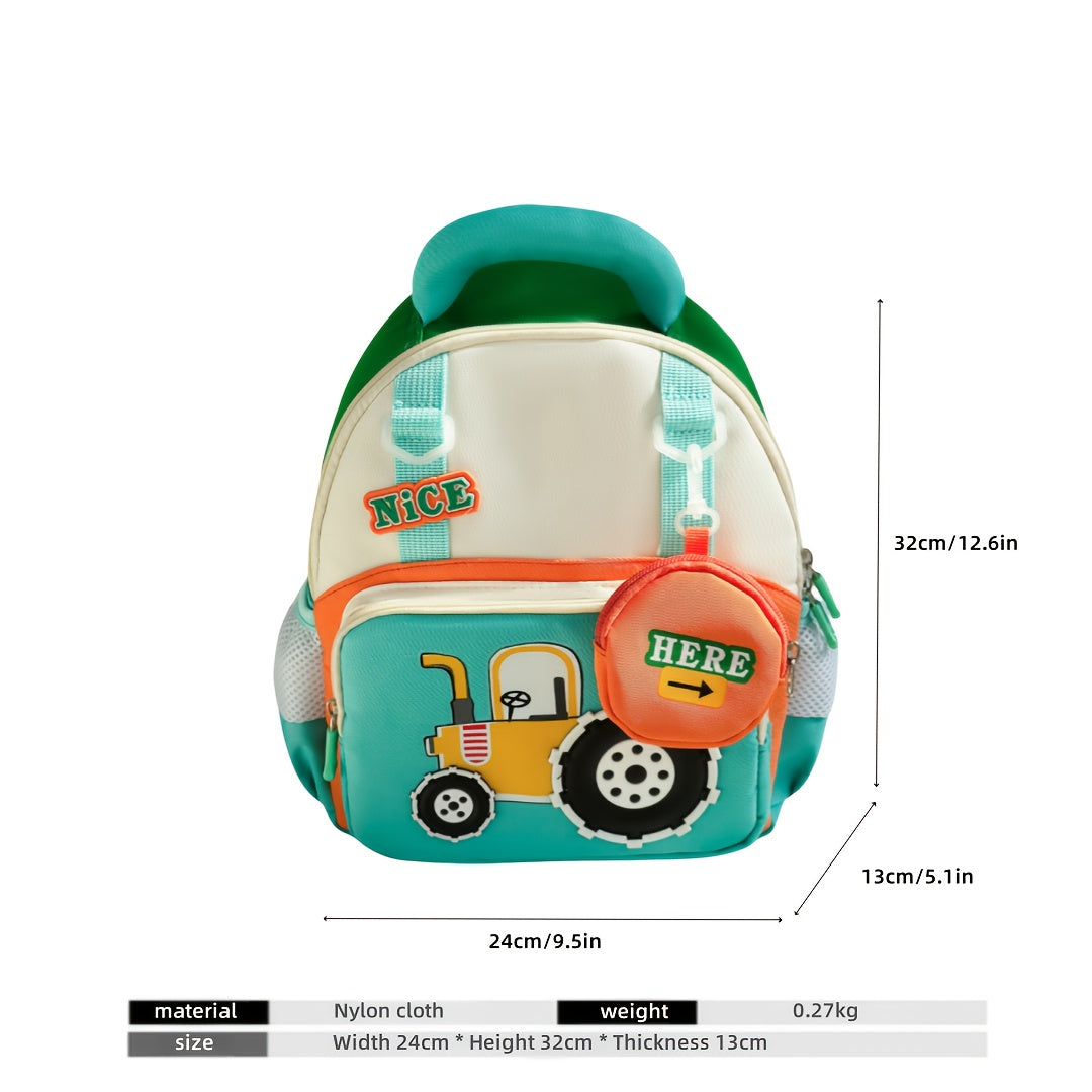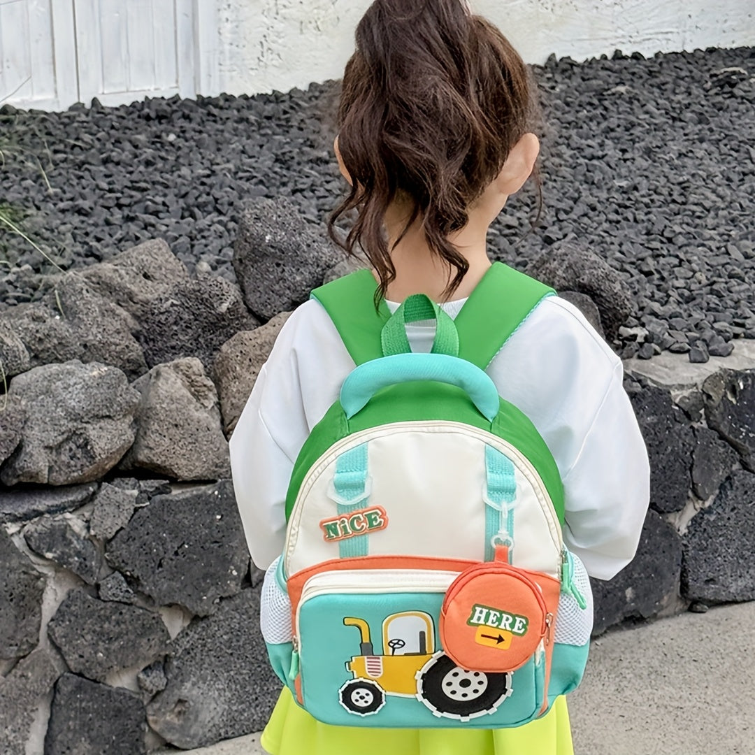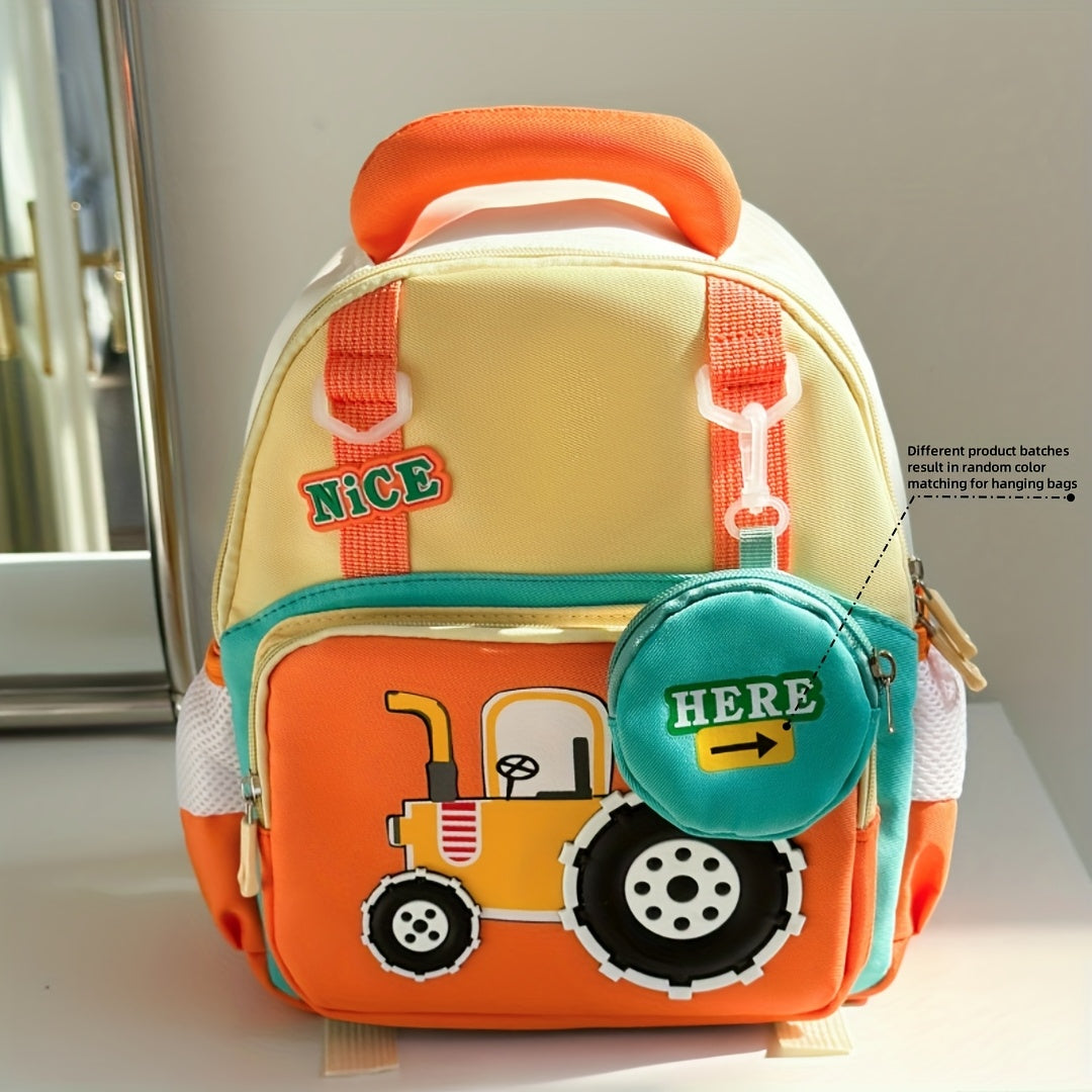 Lightweight Cartoon Tractor Backpacks for Kids - Adjustable Strap, Durable Polyester Lining