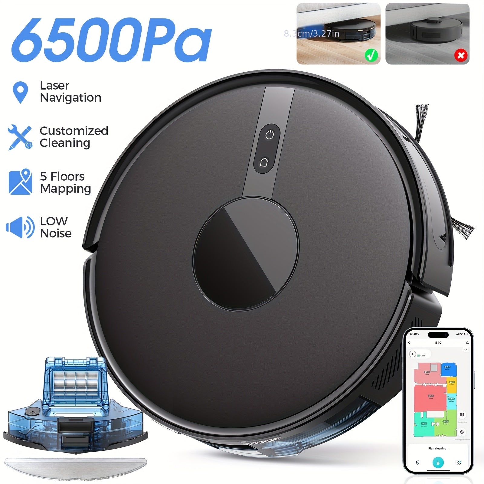 Lubluelu B40 3-in-1 Robot Vacuum and Mop with Mop System, 6500Pa Suction, Ultra-Slim,