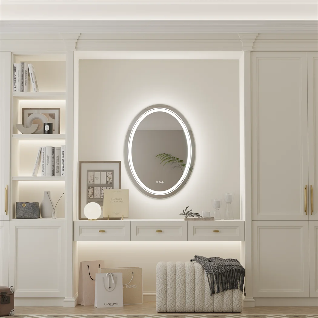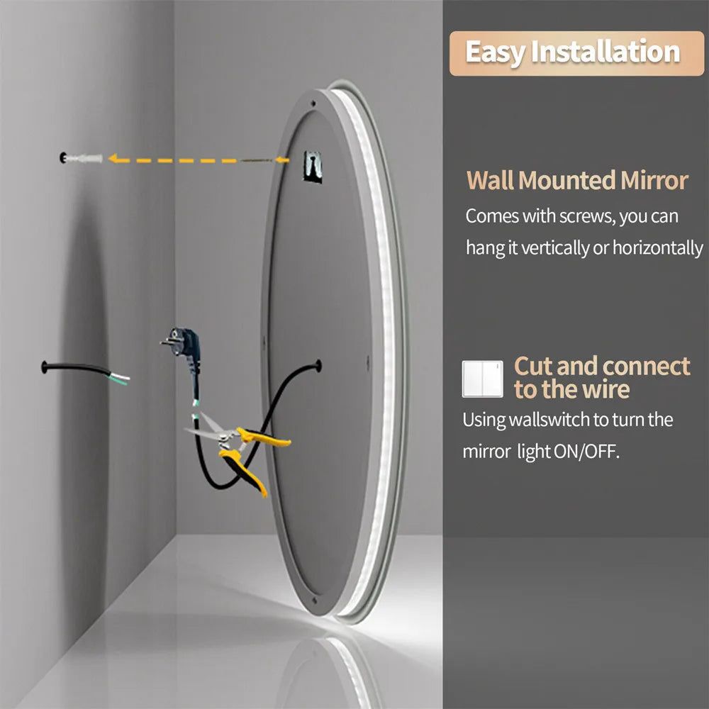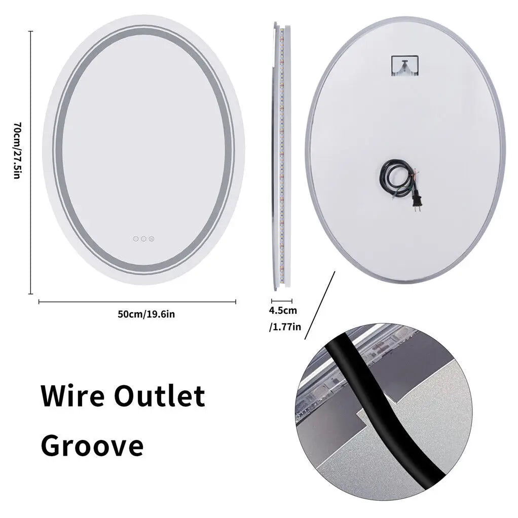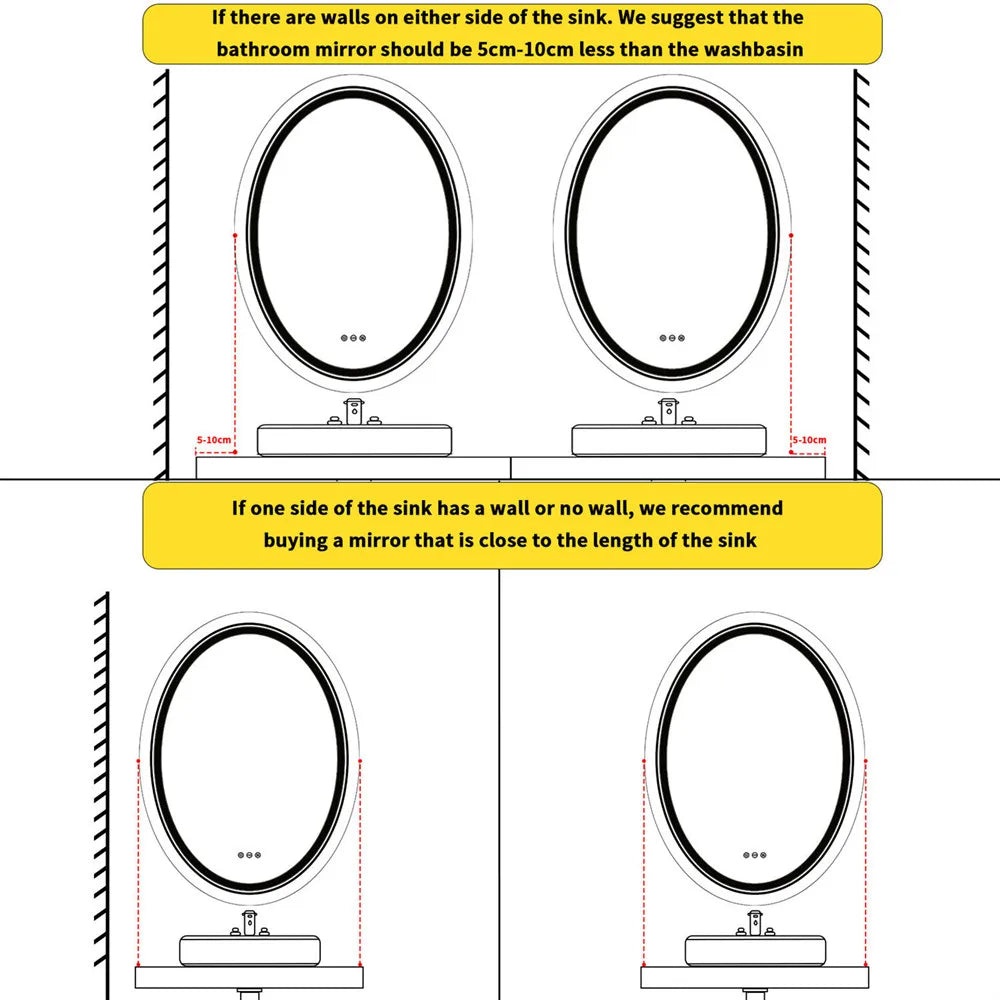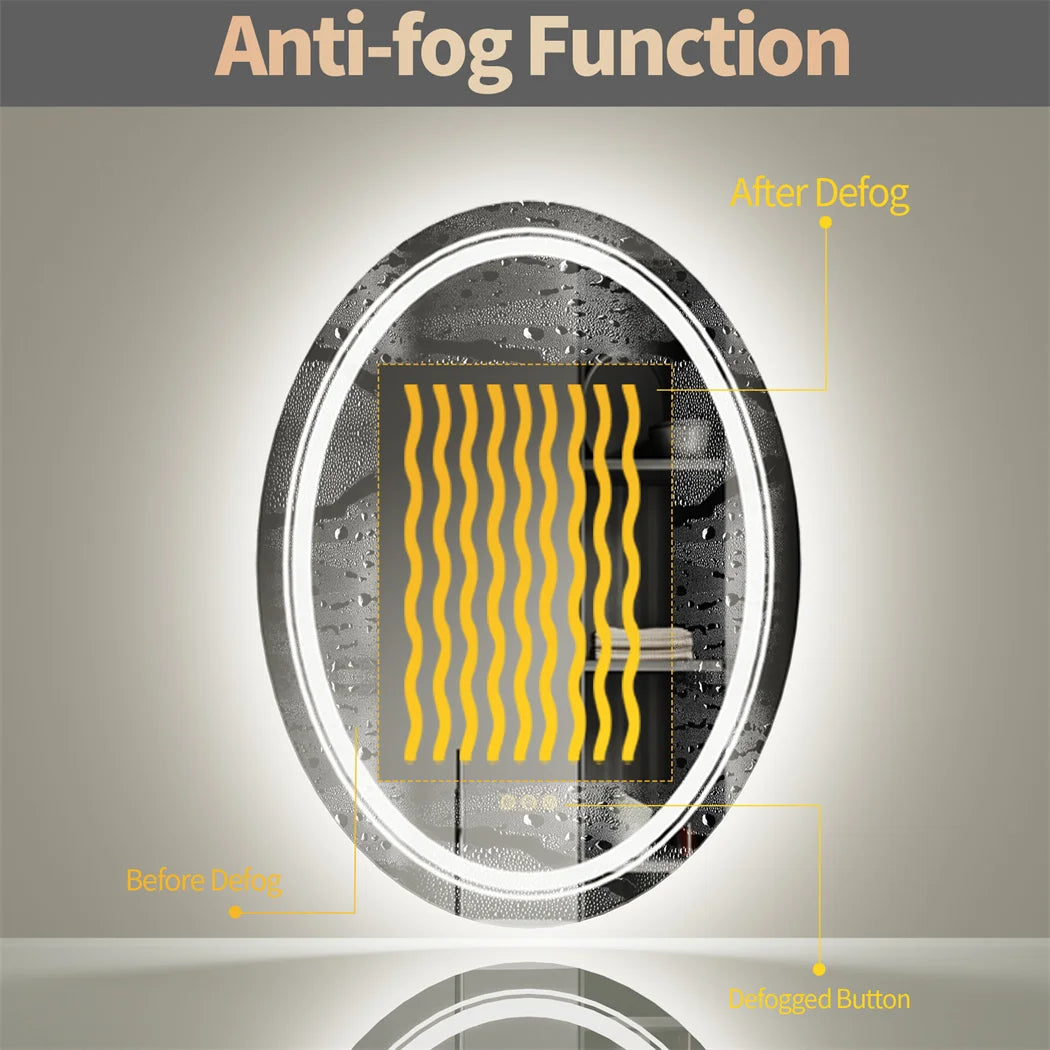 LUVODI Bathroom Mirror LED Light Oval Frameless Shower Shaving Makeup Mirror for Restroom Washroom Dimming Defog
