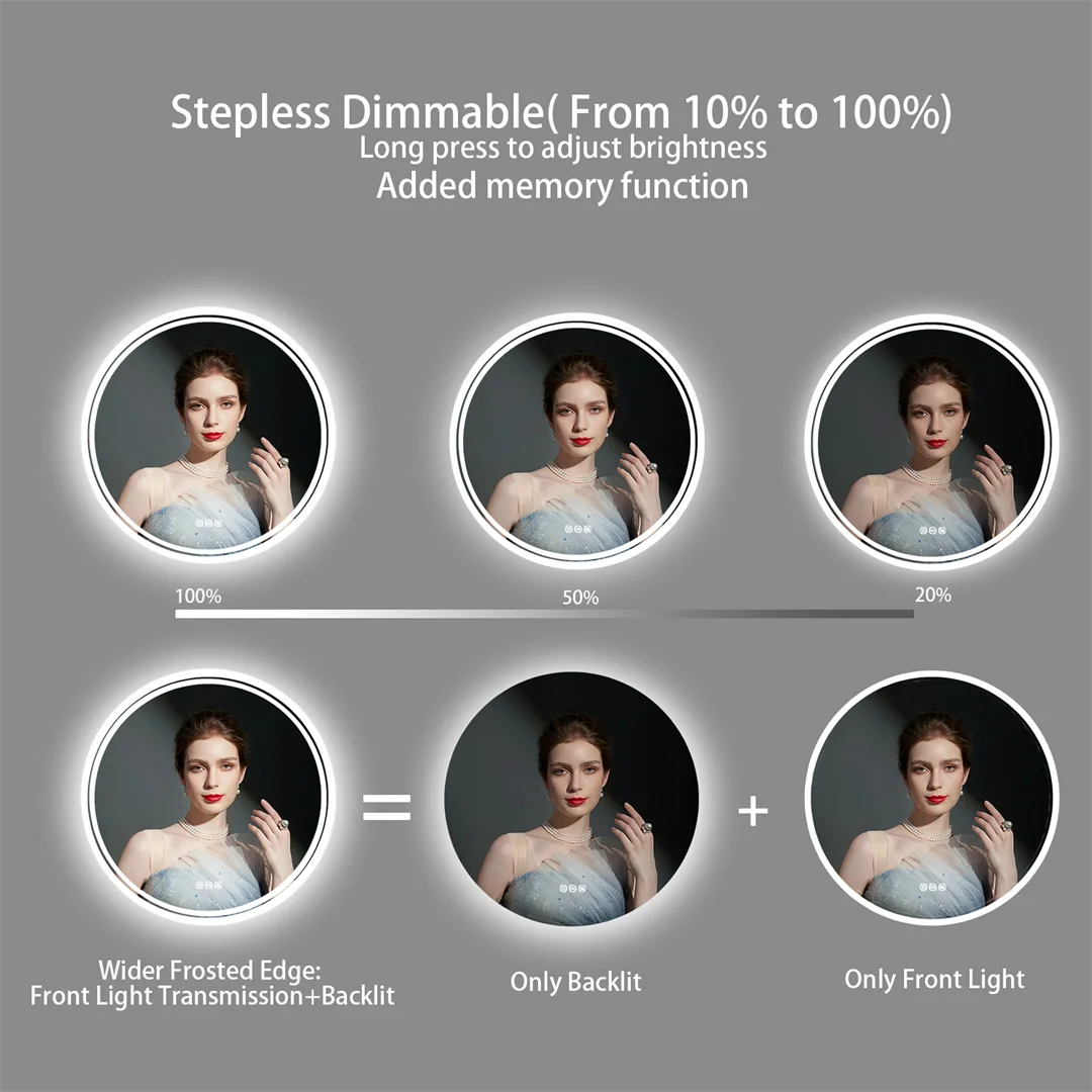 LUVODI Intelligent Illuminate Big Round Mirror for Bathroom Touch Screen Dimmable Anti-fog Bathroom LED Light Mirror