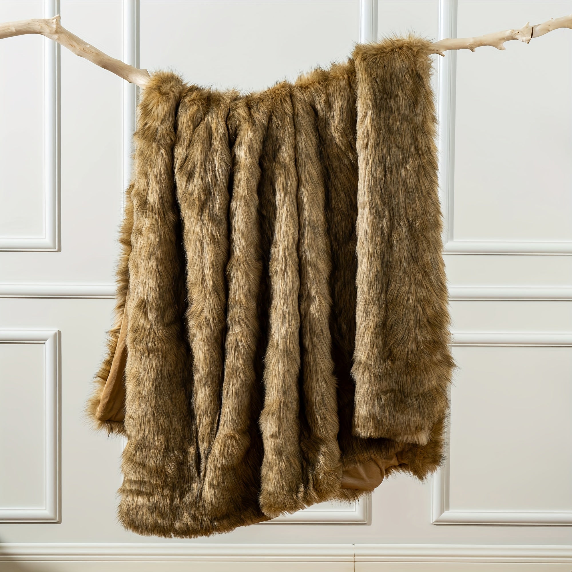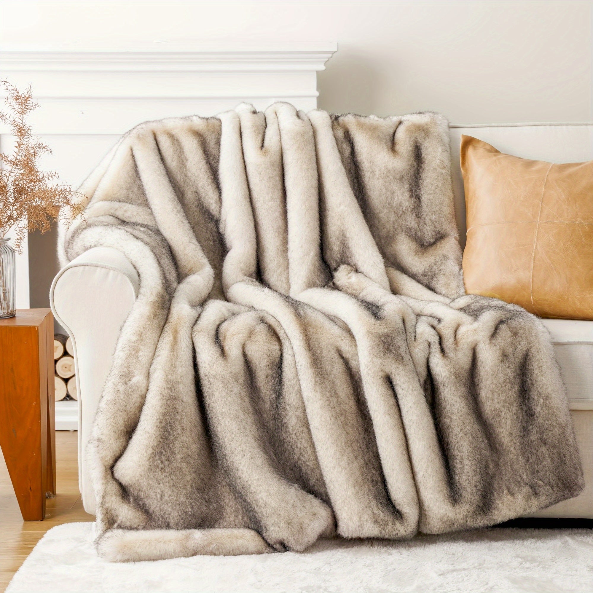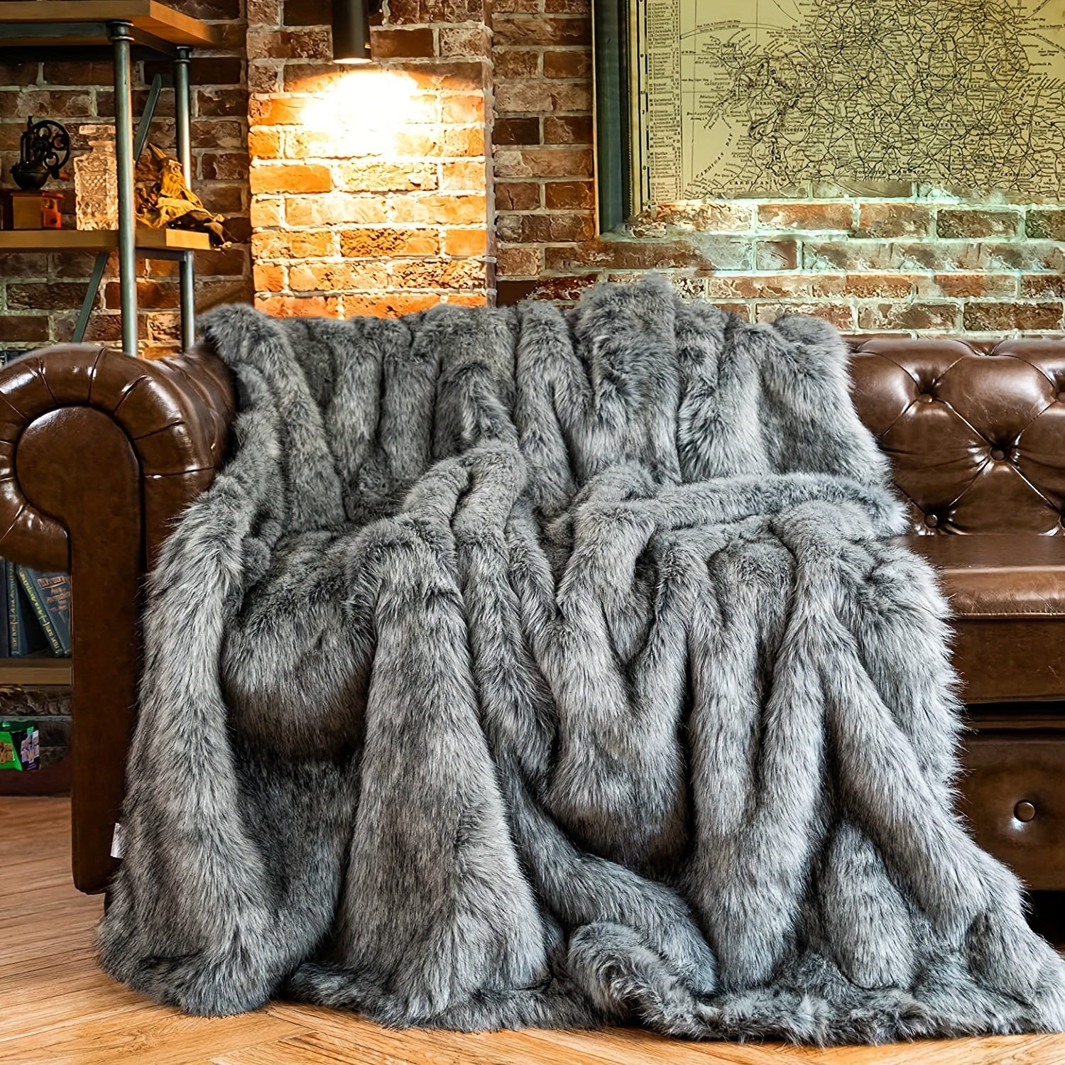 Luxury Reversible Fox Fur & Plush Velvet Throw Blanket - Super Soft Fluffy All-Season Grey Elegant Blanket