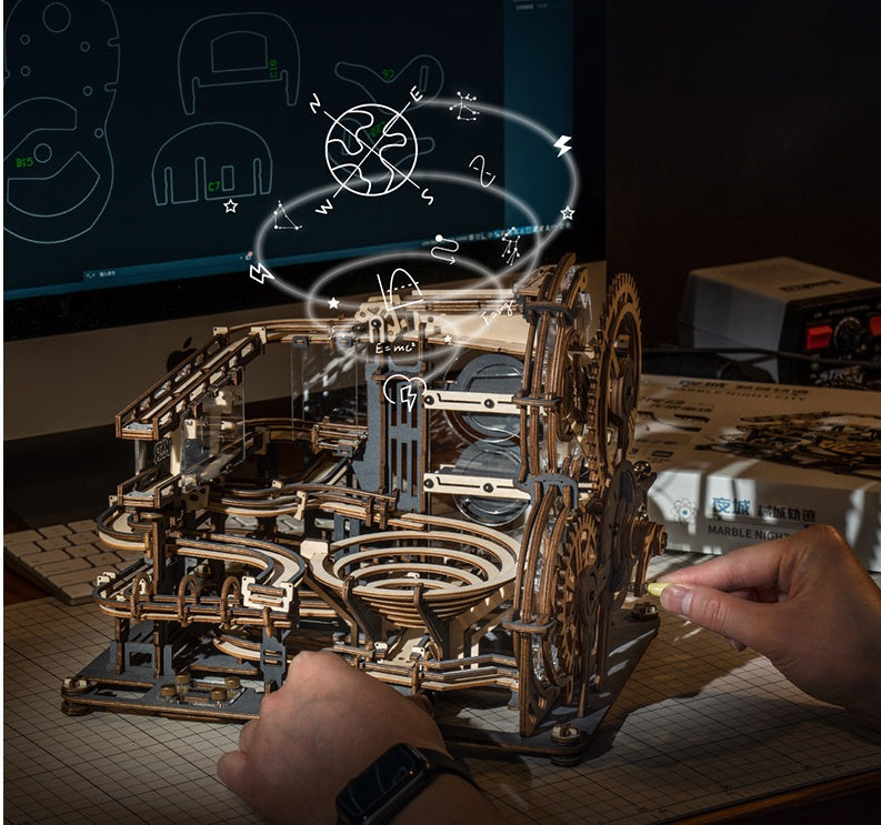 Marble Night City 3D Wooden Puzzle Games Assembly Waterwheel Model Toys For Children Kids Birthday Gift