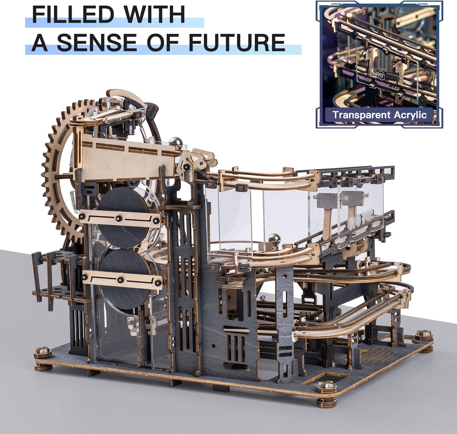 About this item 【Build, Play, Explore】 Embark on an exciting journey with our 294-Piece Marble Run Engineering Toy. This set includes both wooden and plastic pieces, allowing you to construct intricate mazes for marbles. Perfect for promoting STEM skills, it provides a fun and educational activity for both adults and children/teens. 【Cool Perpetual Motion Science Kits】 Experience the charm of mechanical engineering with the ROBOTIME Wooden Marble Run. Powered by hand cranking and mechanical gear rotation, it features an endless loop of steel balls (10 included) that demonstrate perpetual motion in action. 【It’s Worth the Time】 This thoughtfully designed building set teaches patience, problem-solving, and engineering concepts, while also enhancing hand-eye coordination. The detailed instruction book simplifies the assembly process, making it easy to understand how to use each piece and build your maze effortlessly. 【100% Safe Material】 Crafted with precision using exquisite laser technology, all parts of this 3D wooden puzzle are made from high-quality, non-toxic, tasteless, and recyclable materials. No tools or glue are needed, ensuring a safe and seamless building experience. 【After-Sale Service】 We are committed to your satisfaction. If you encounter any issues during assembly, such as damaged or missing parts, please feel free to contact us. Our dedicated support team will respond within 24 hours and assist you promptly. This engaging and educational marble run set makes a perfect gift for aspiring engineers and curious minds, bringing endless hours of creative fun and learning! Marble Maze STEM Toy Building Sets for Teens & Adults