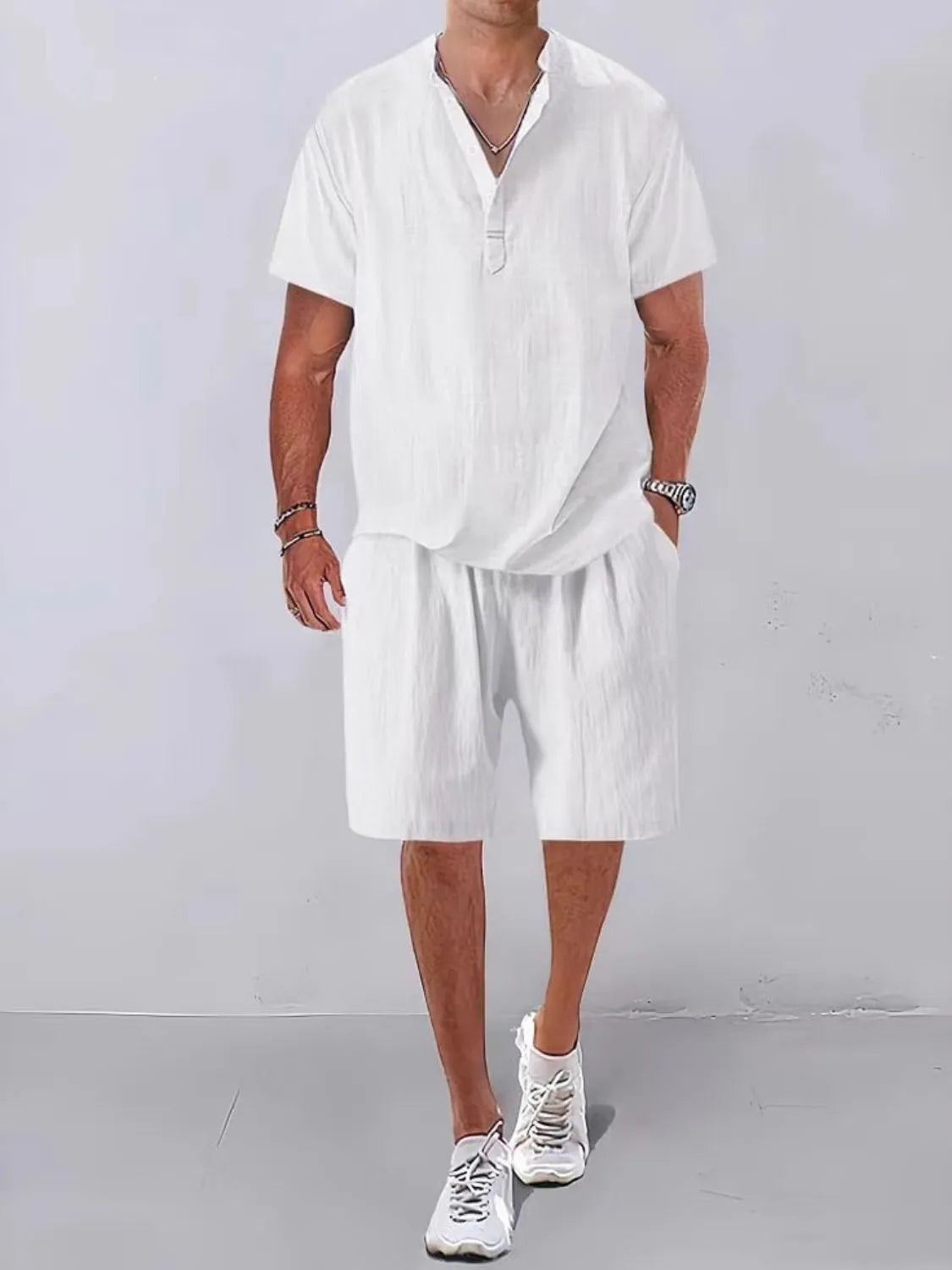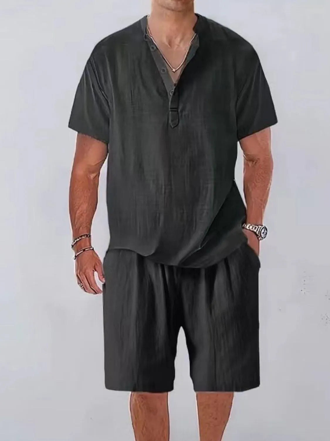 Men‘s Plus Size Button Detail Short Sleeve Top and Shorts Set