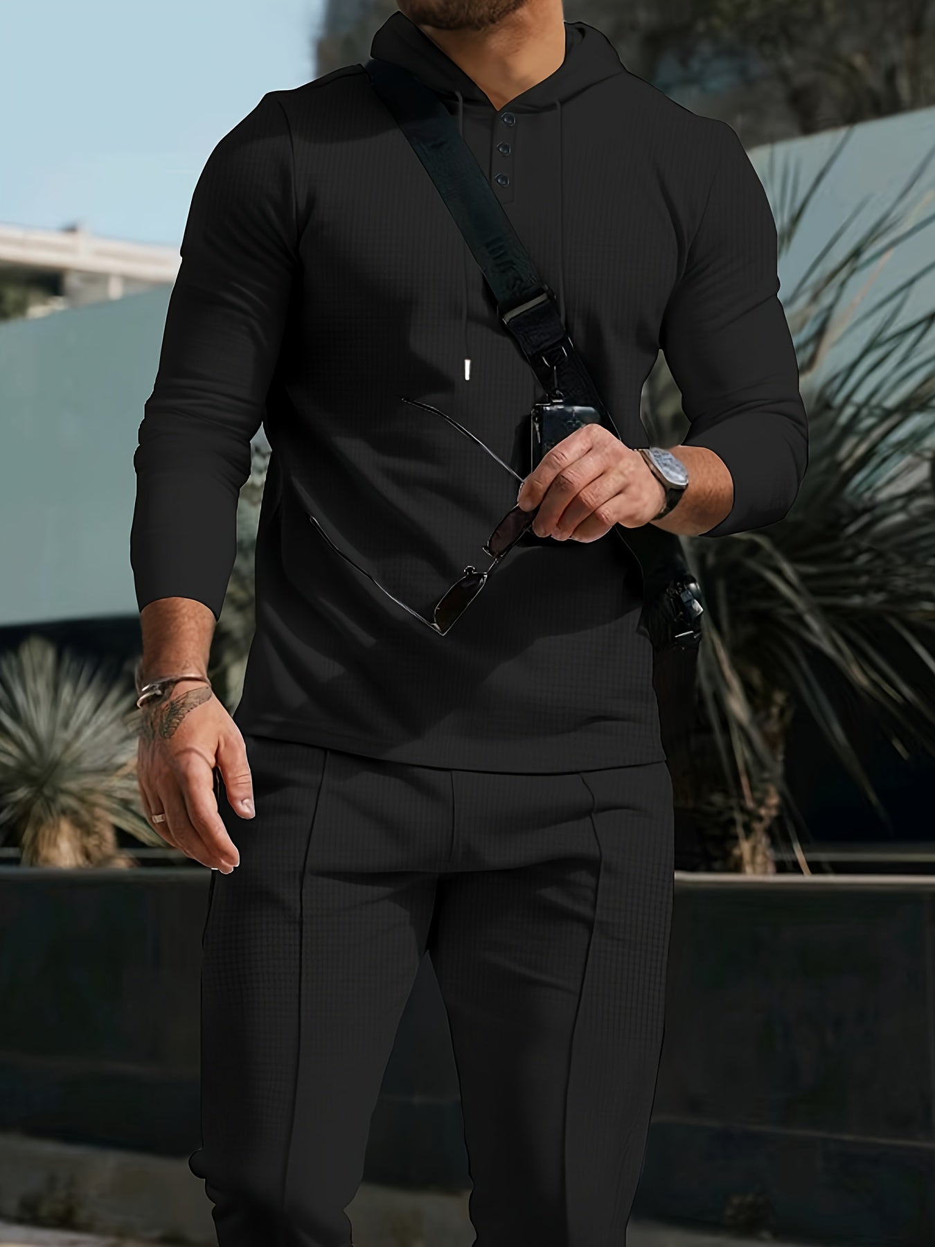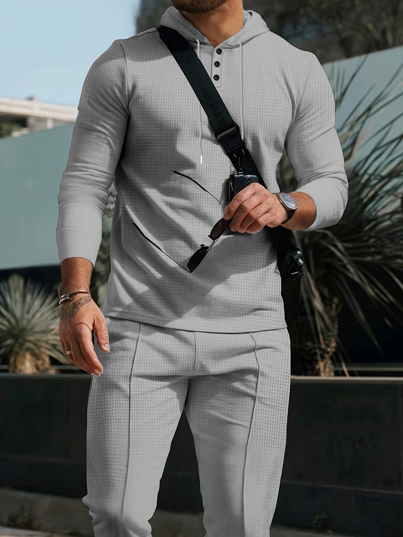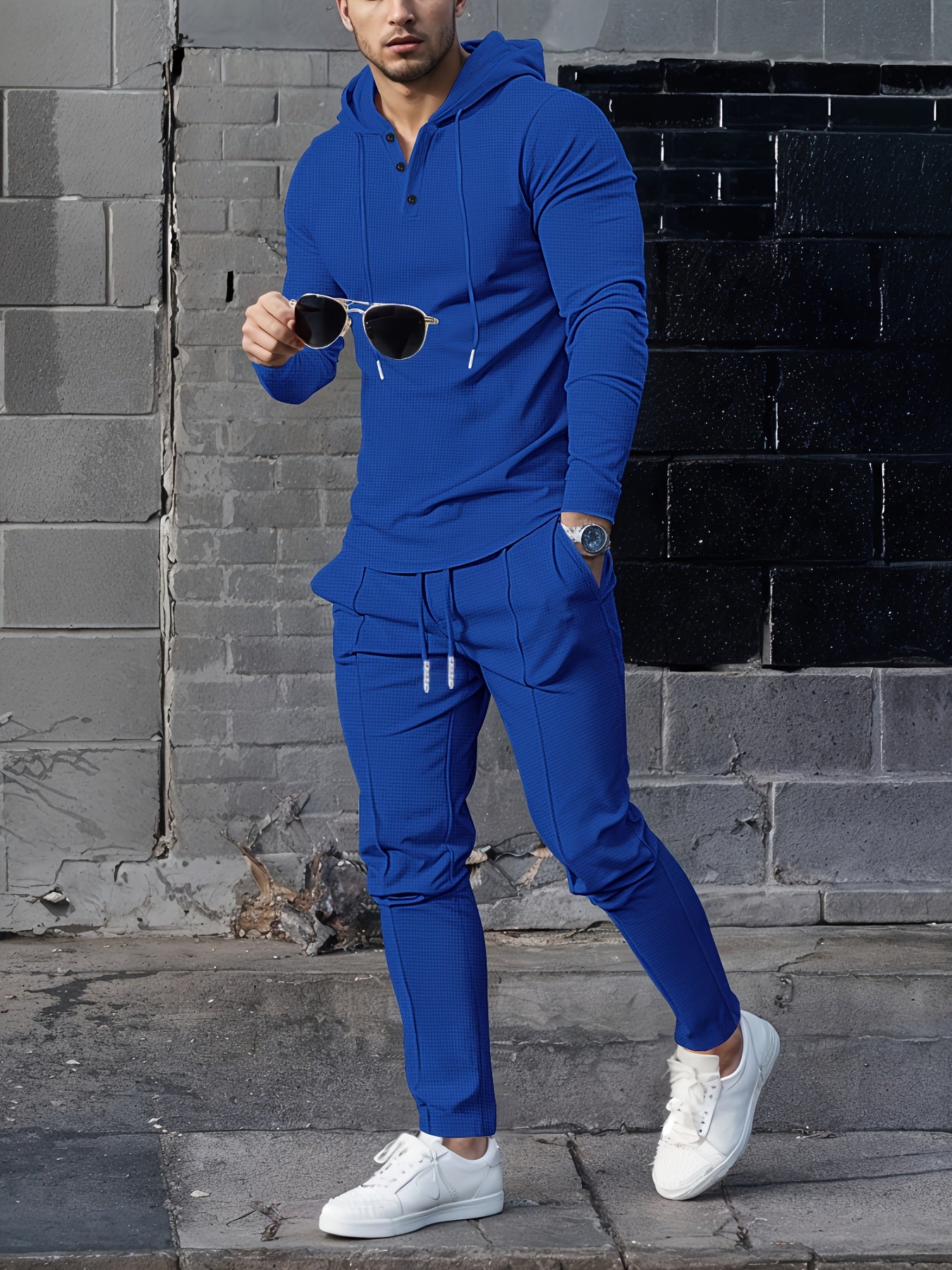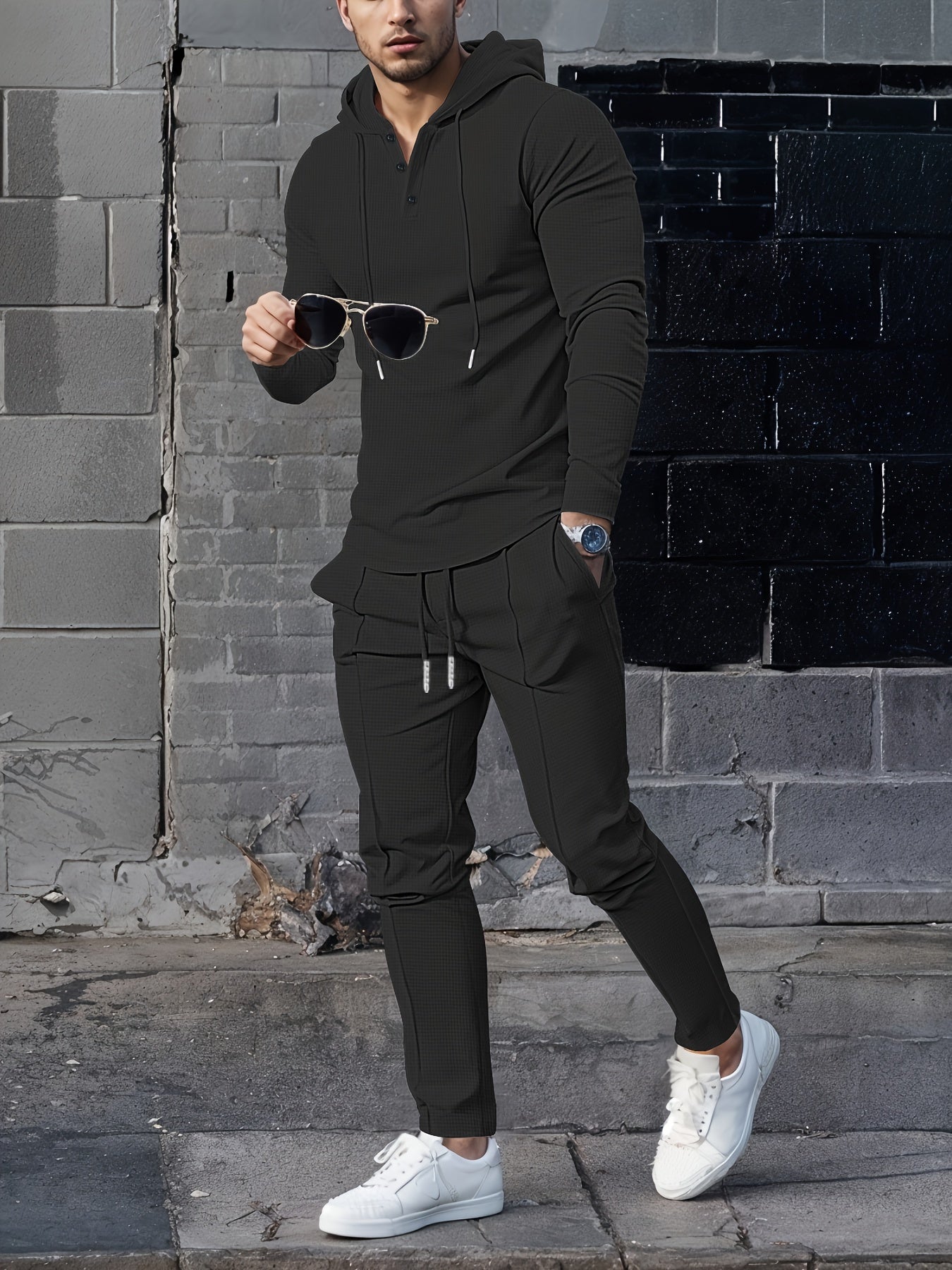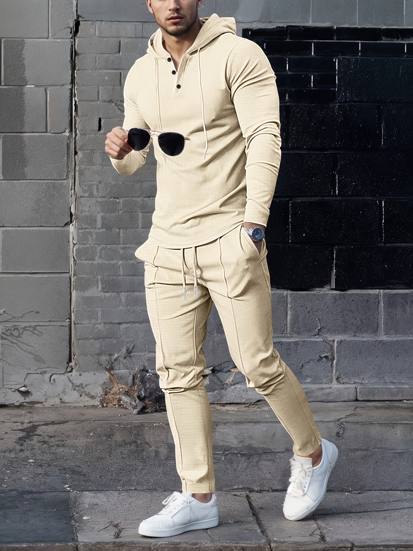 Men's Casual Sportswear Set - Hooded Long Sleeve Top & Joggers with Drawstring, Polyester Blend, Perfect for Spring/Fall Outdoor Activities