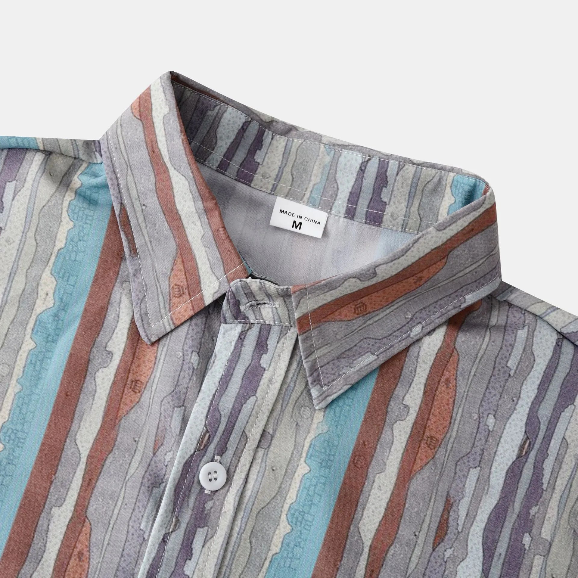 Men's Casual Vintage Striped Long Sleeve Button-Down Shirt
