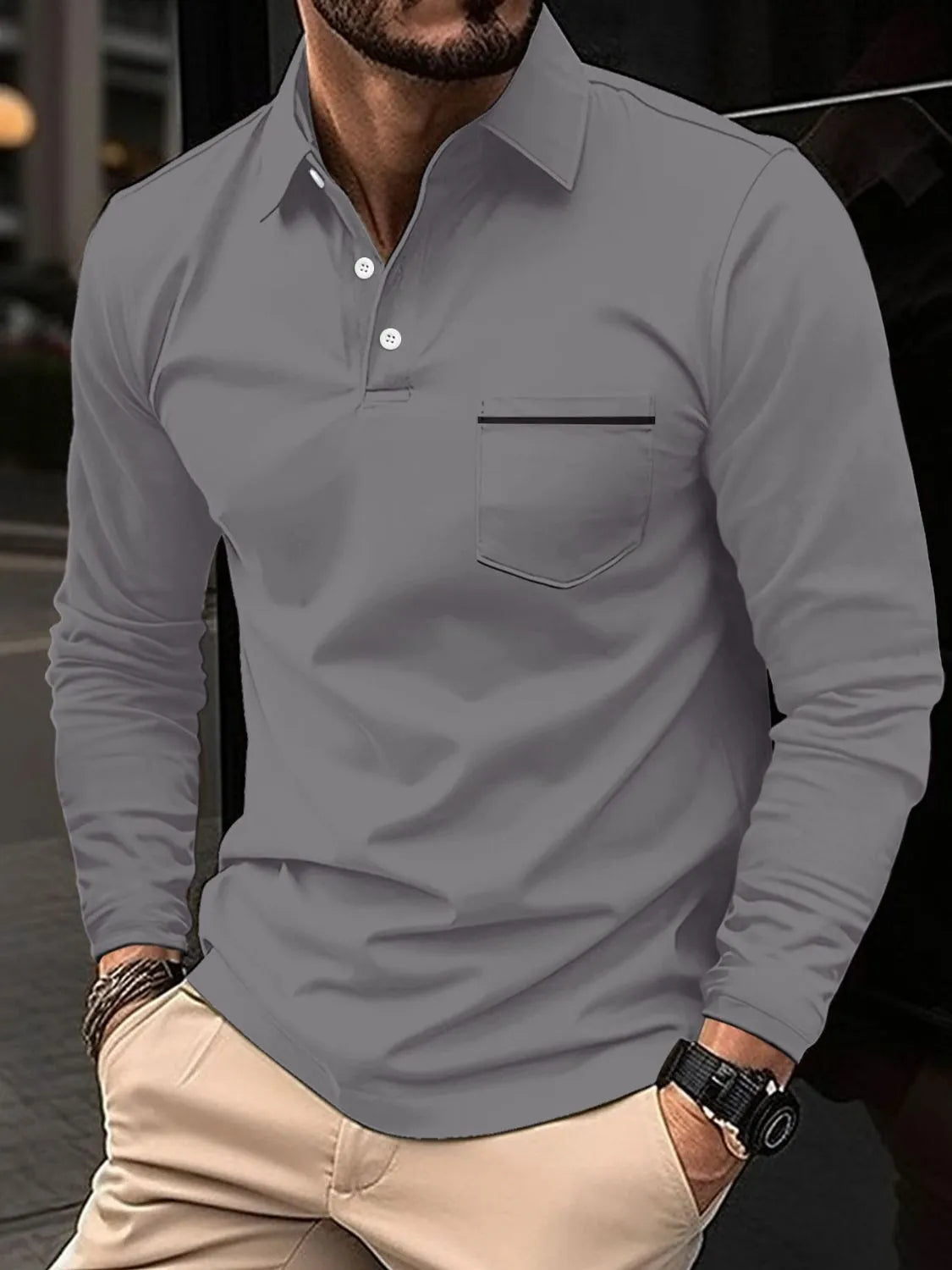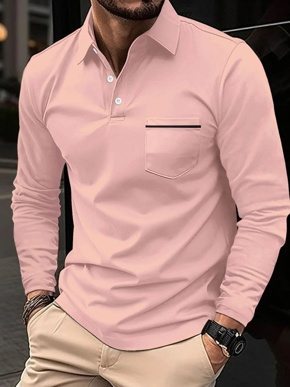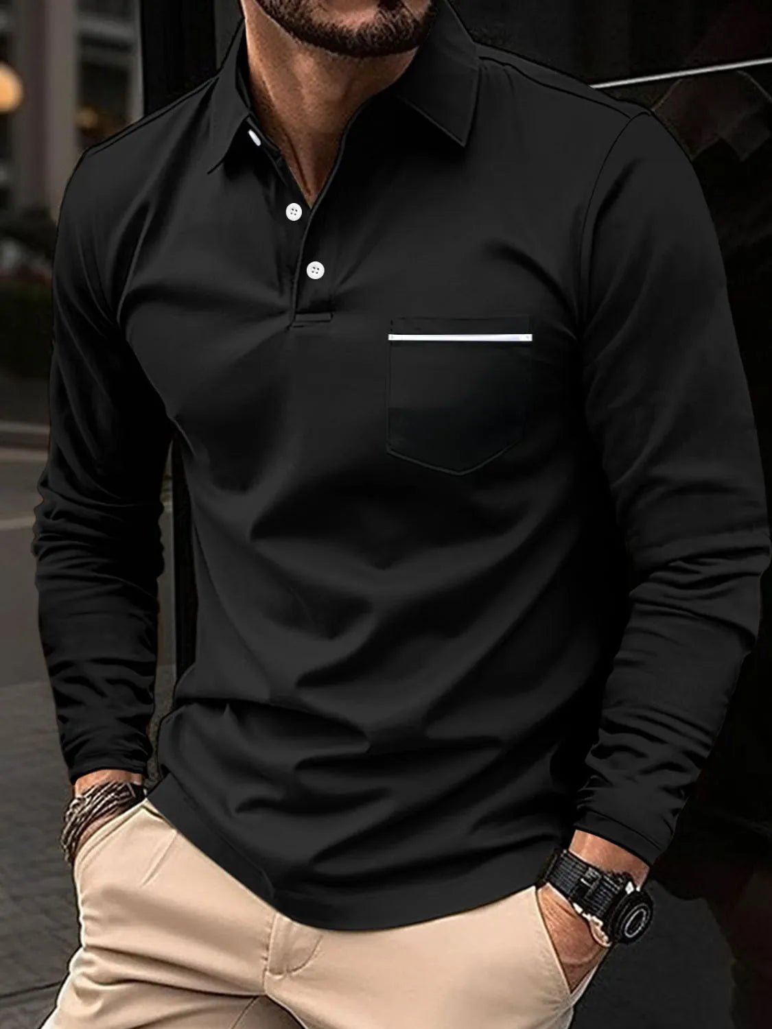 Men's Full Size Button Detail Long Sleeve Polo Plus Size