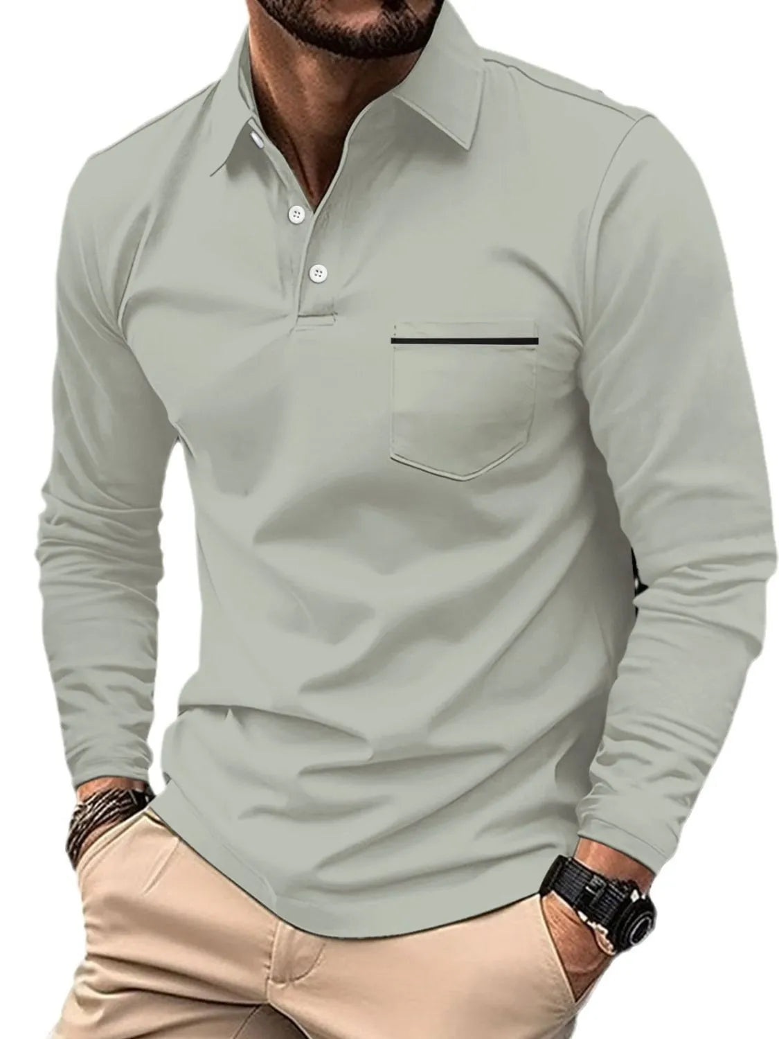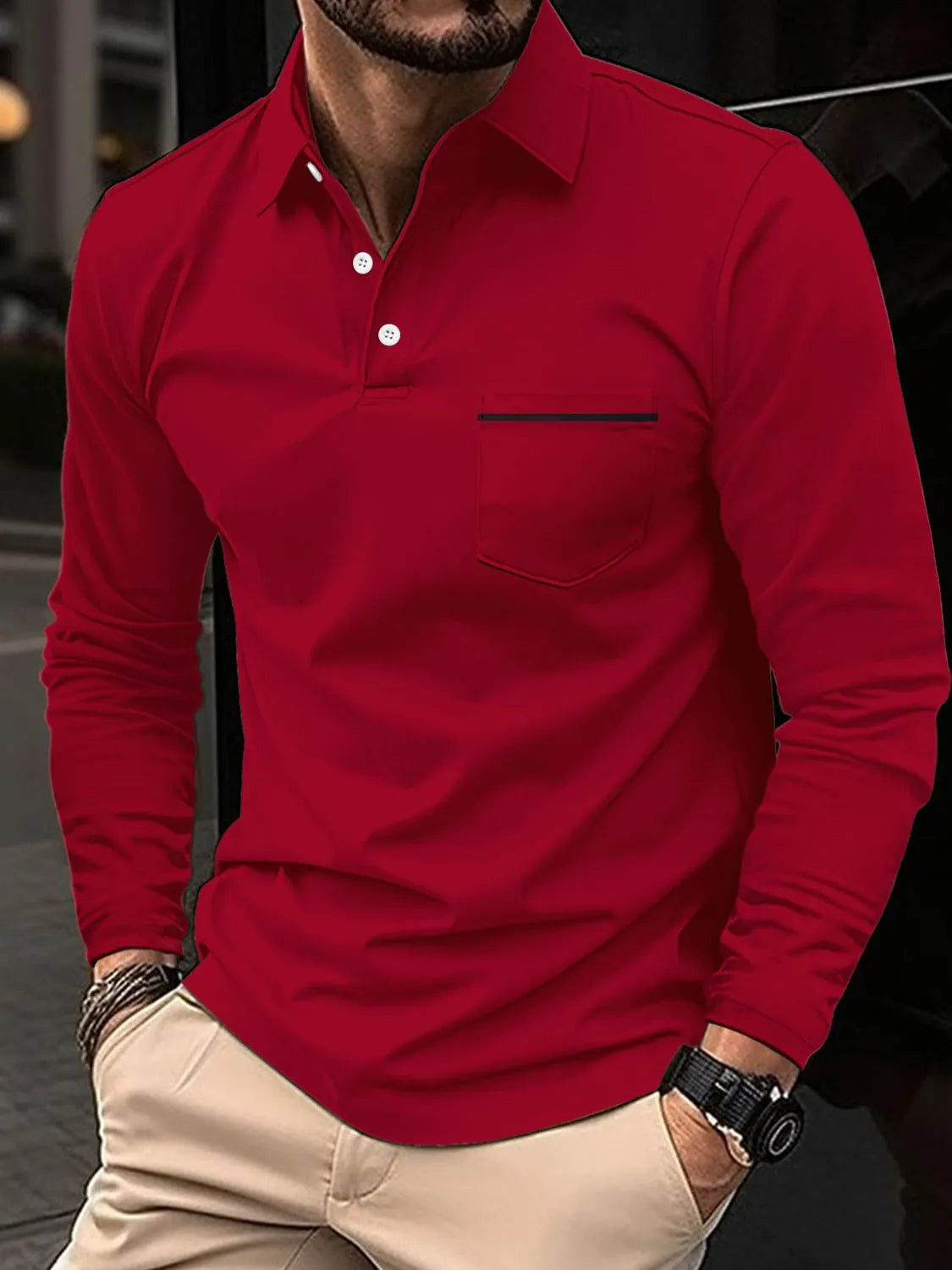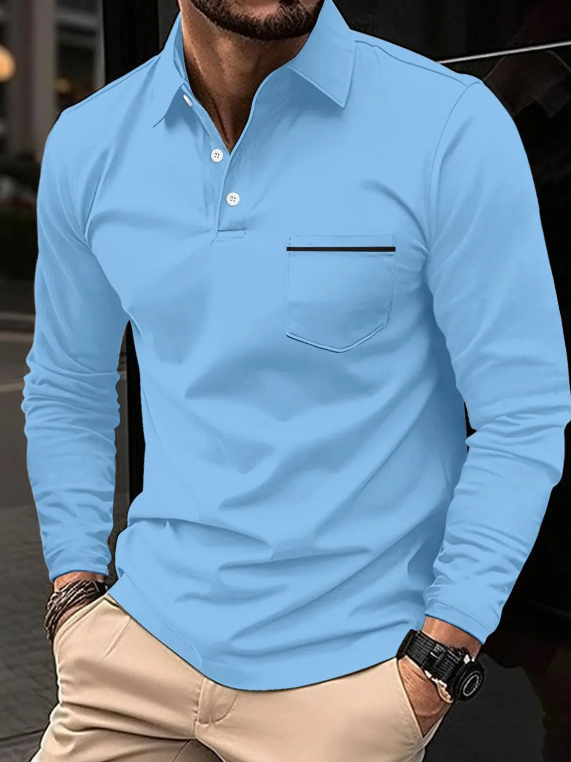 Men's Full Size Button Detail Long Sleeve Polo Plus Size