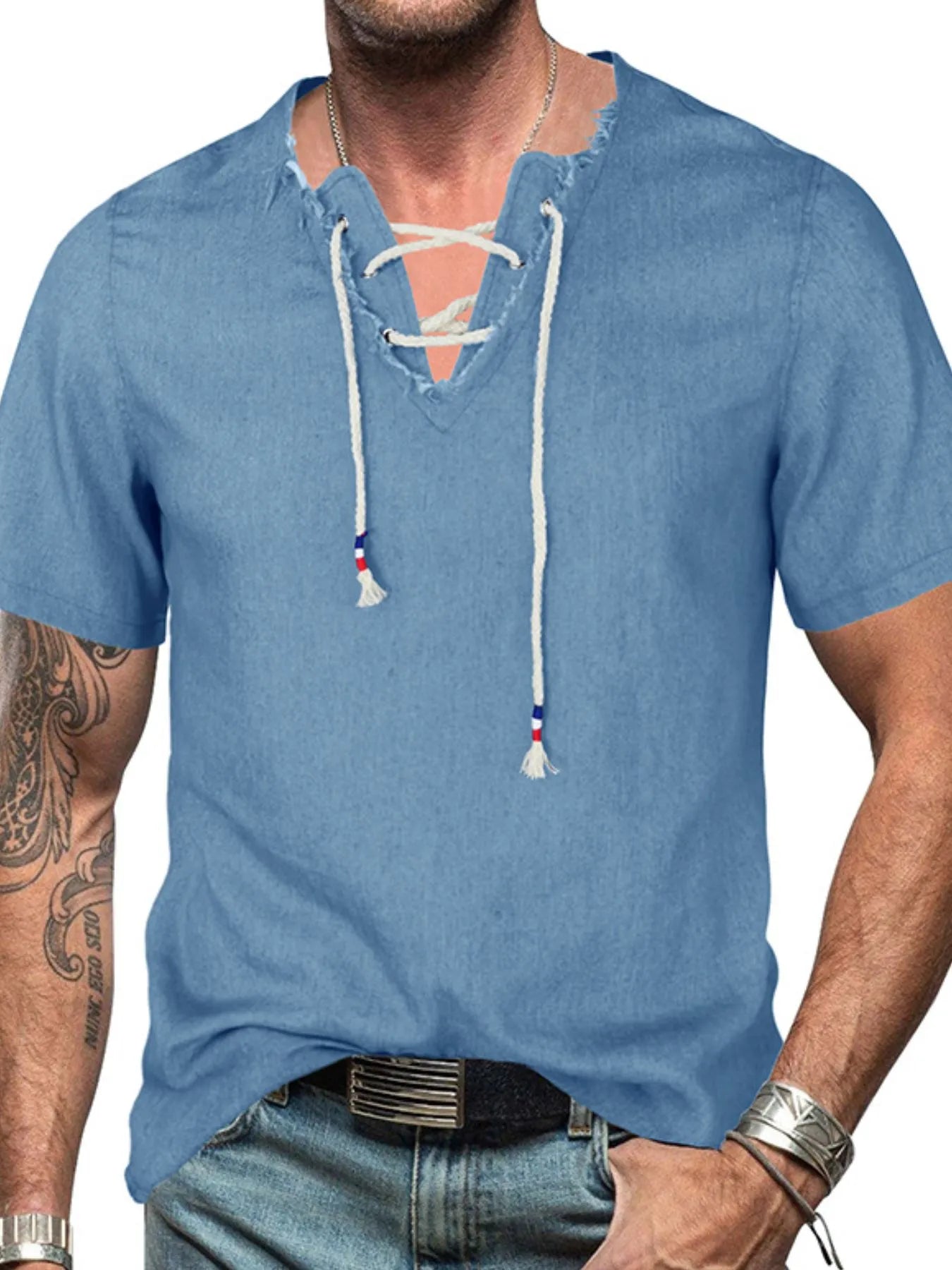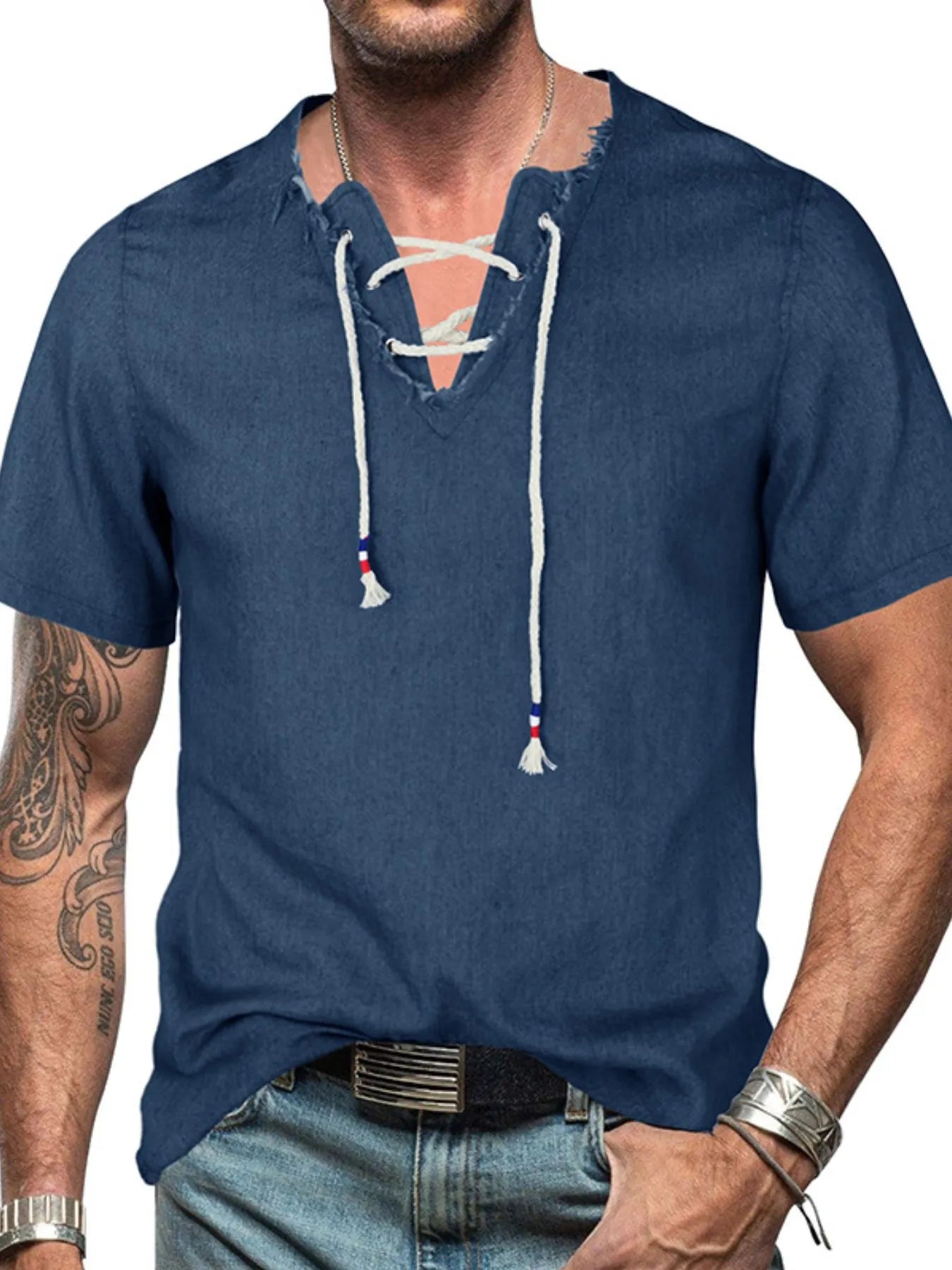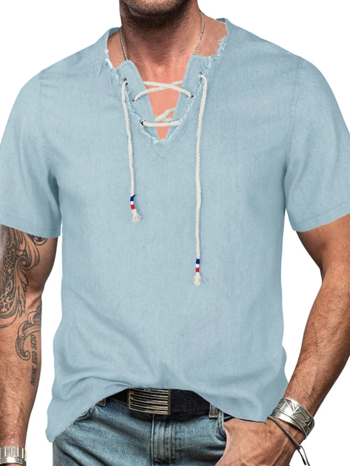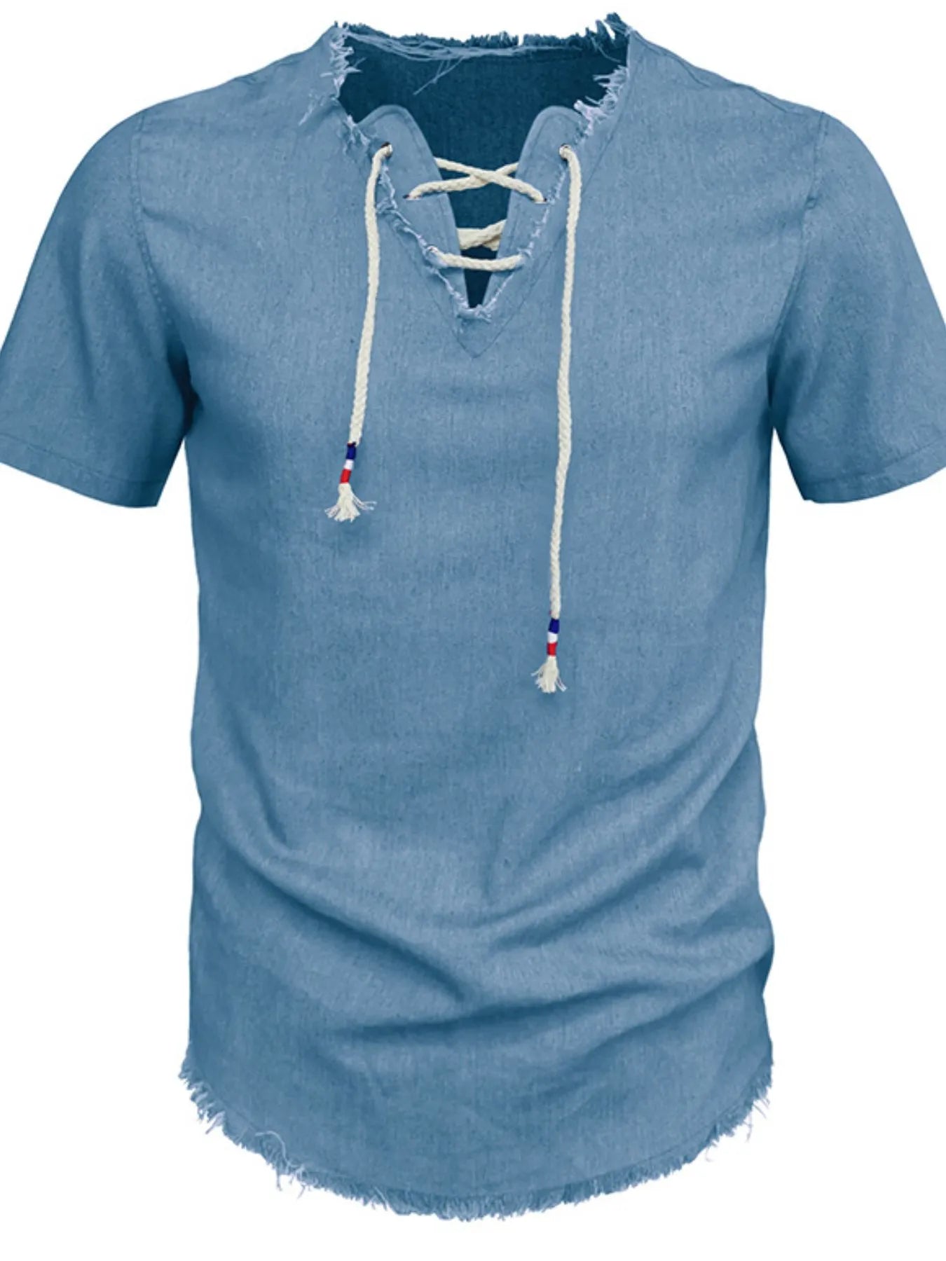 Men's Full Size Classic Raw Hem Short Sleeve Denim Top Plus Size