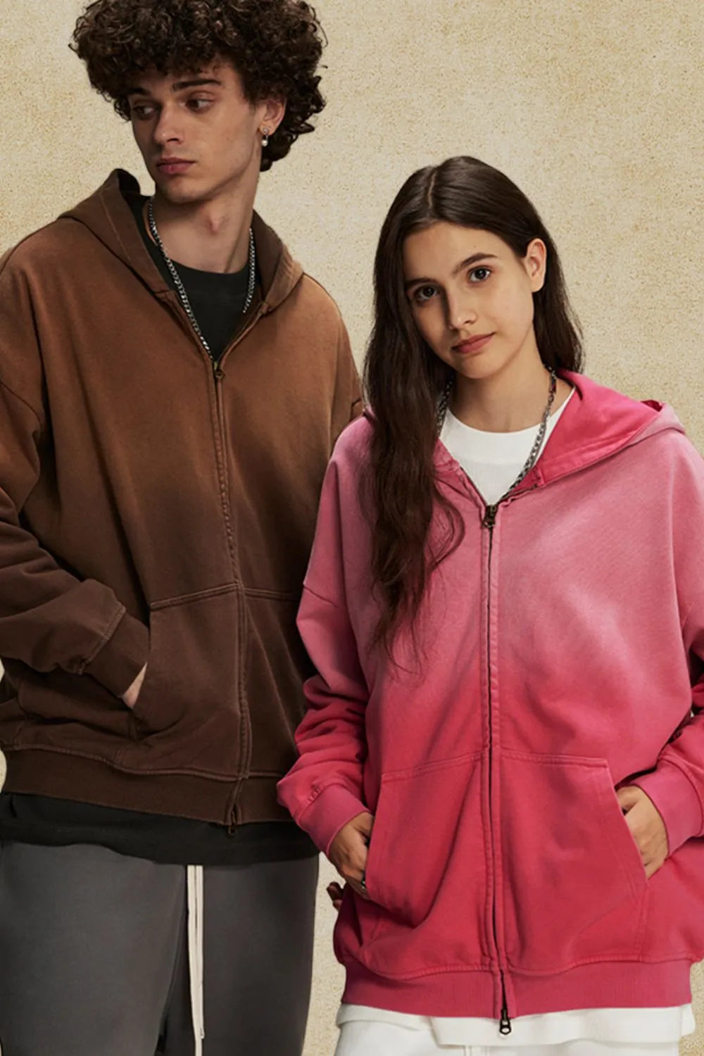 Men's Gradient Zip Up Drop Shoulder Hoodie