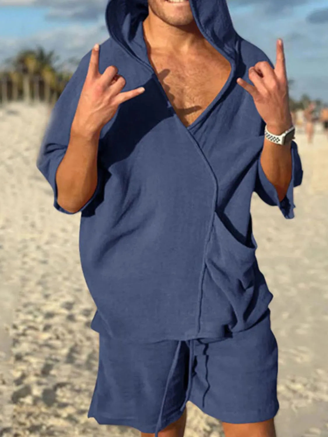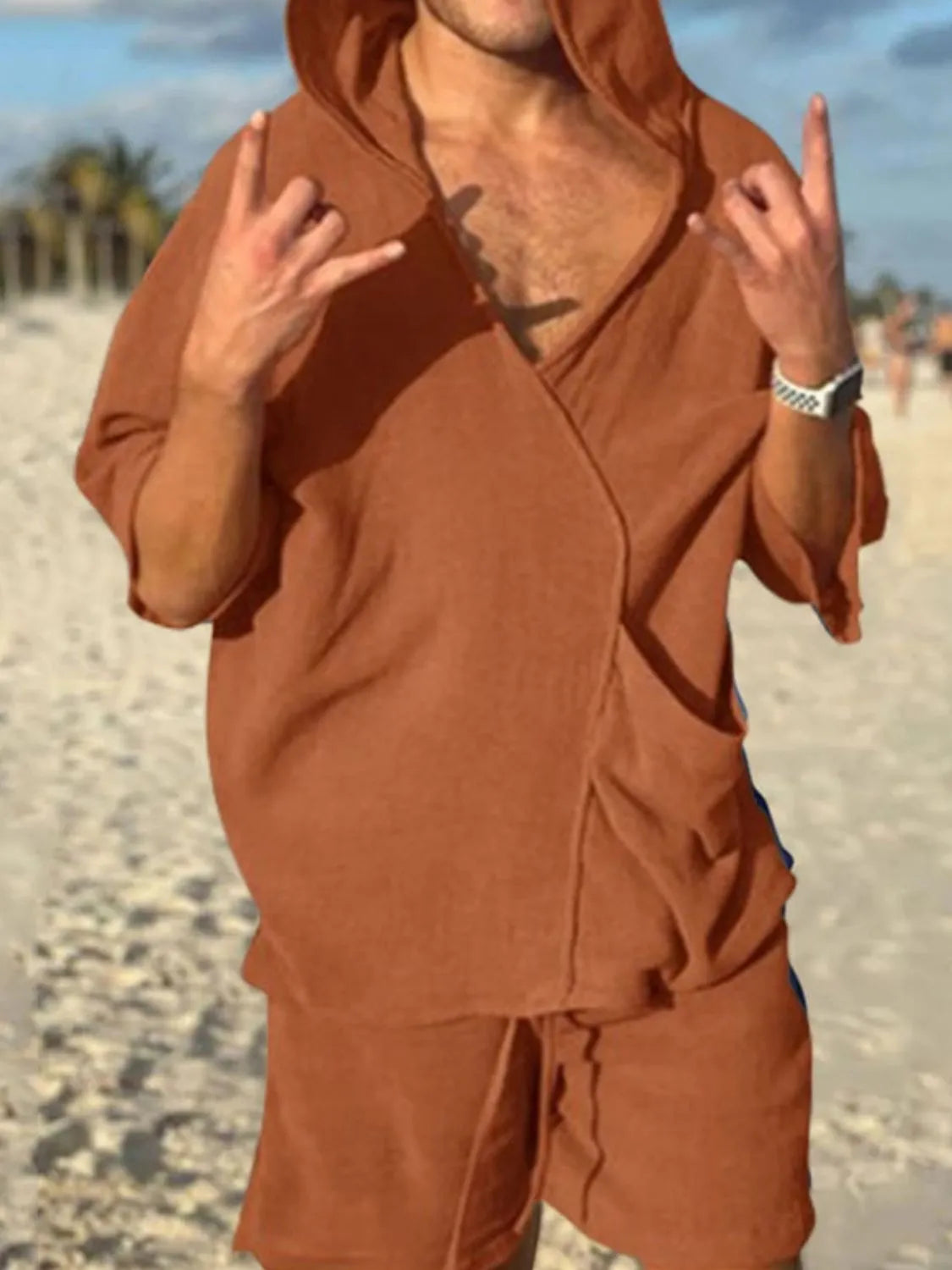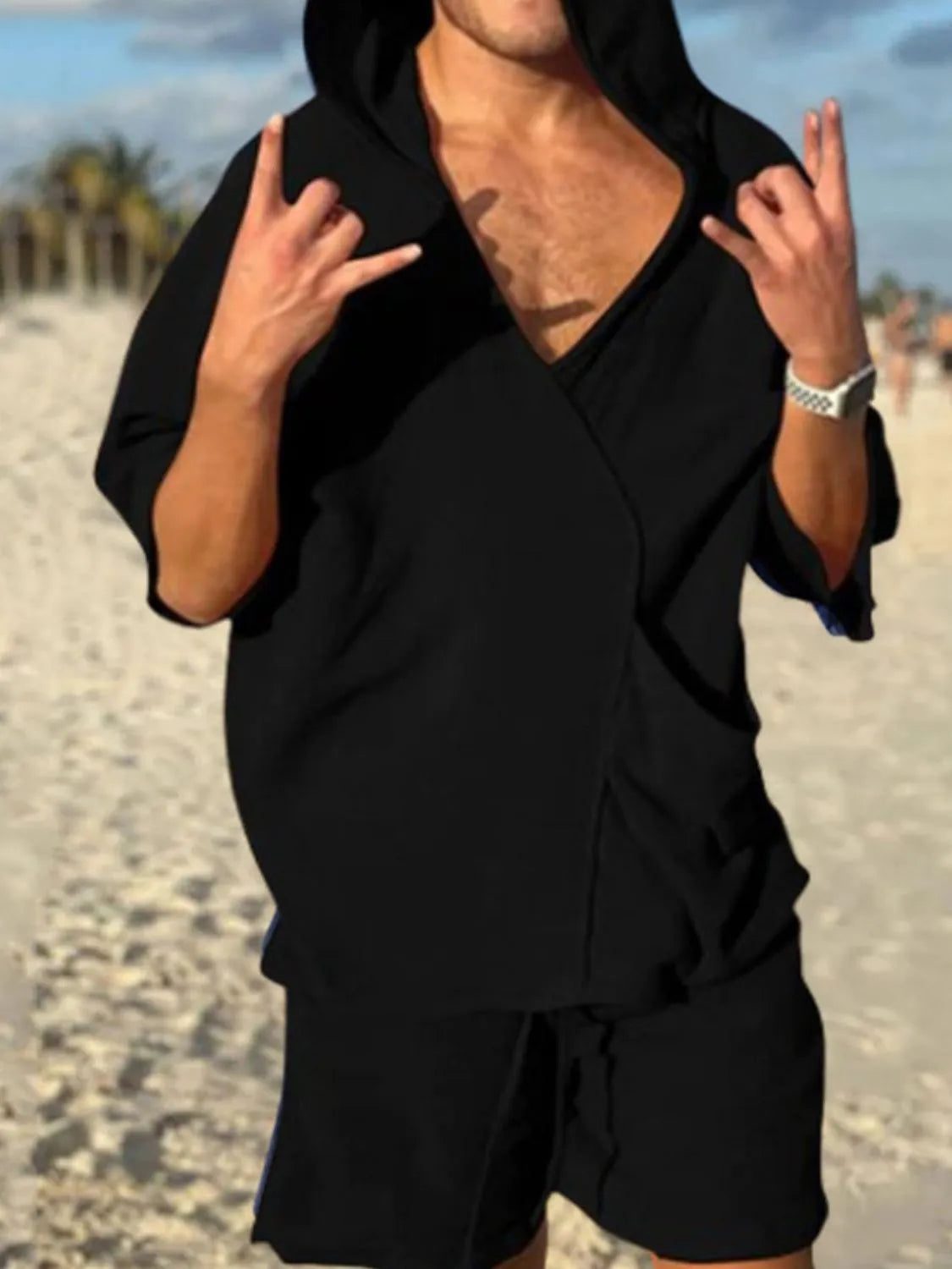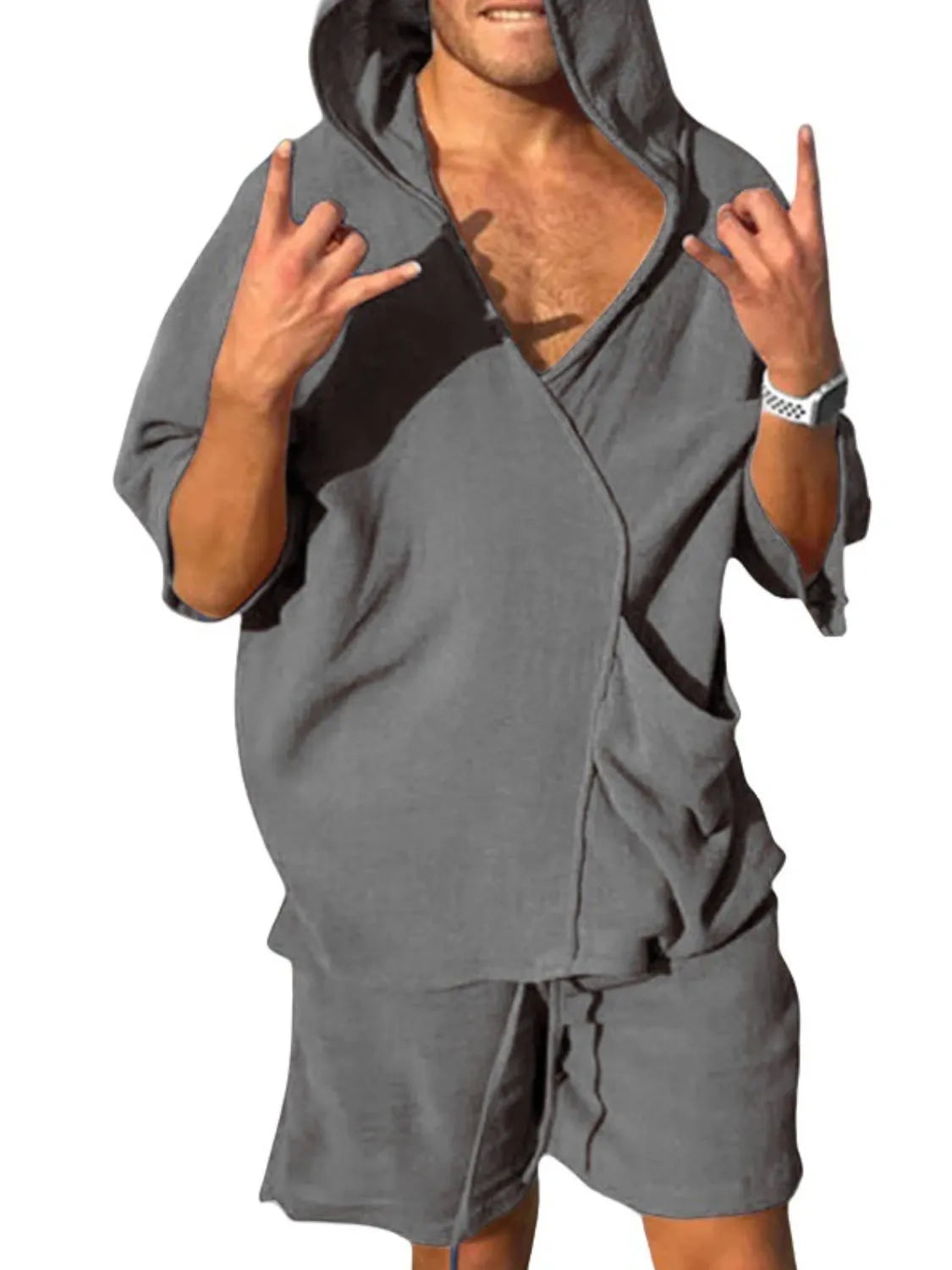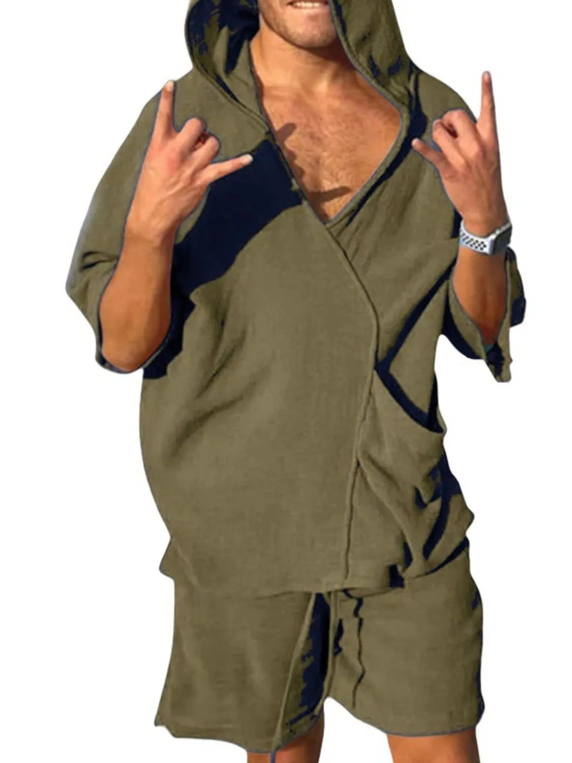 Men's Half Sleeve Hooded Top and Shorts Set