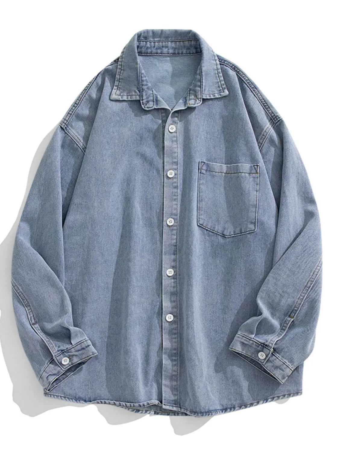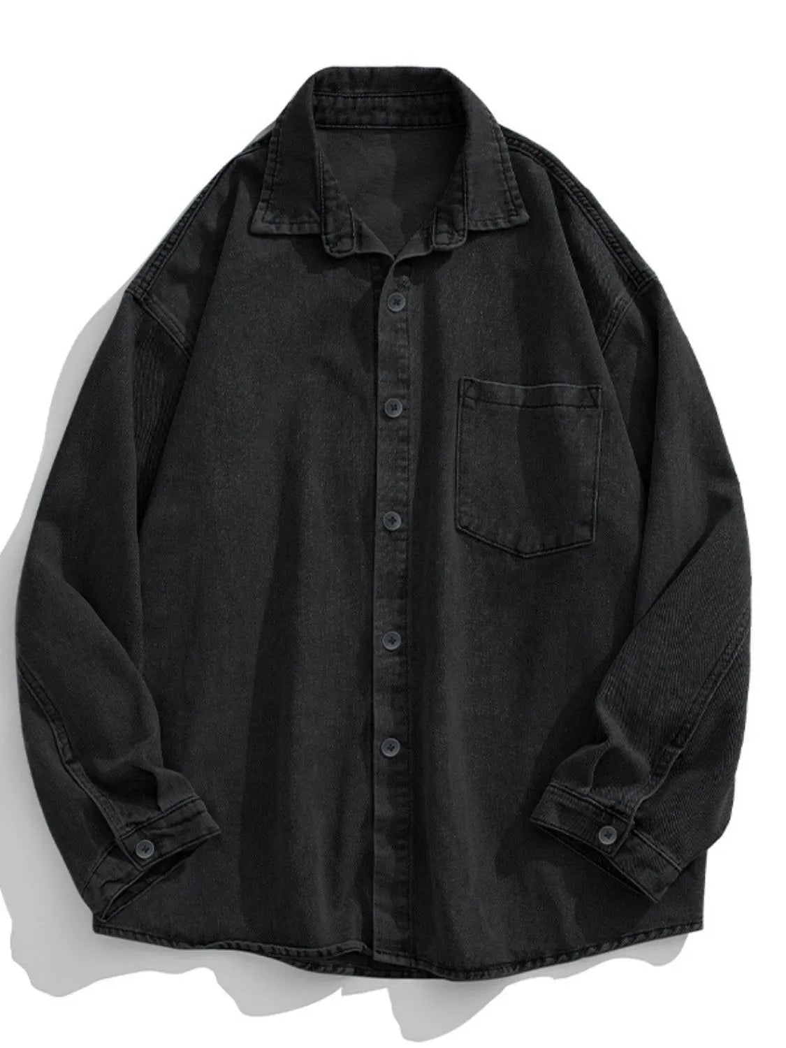 Men's Plus Size Collared Neck Long Sleeve Denim Shirt