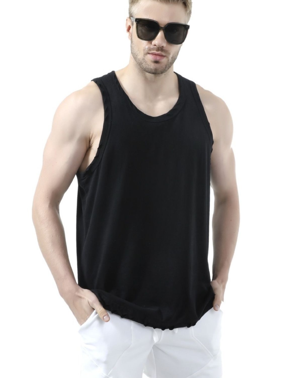 Men's Plus Size Distressed Hem Round Neck Tank