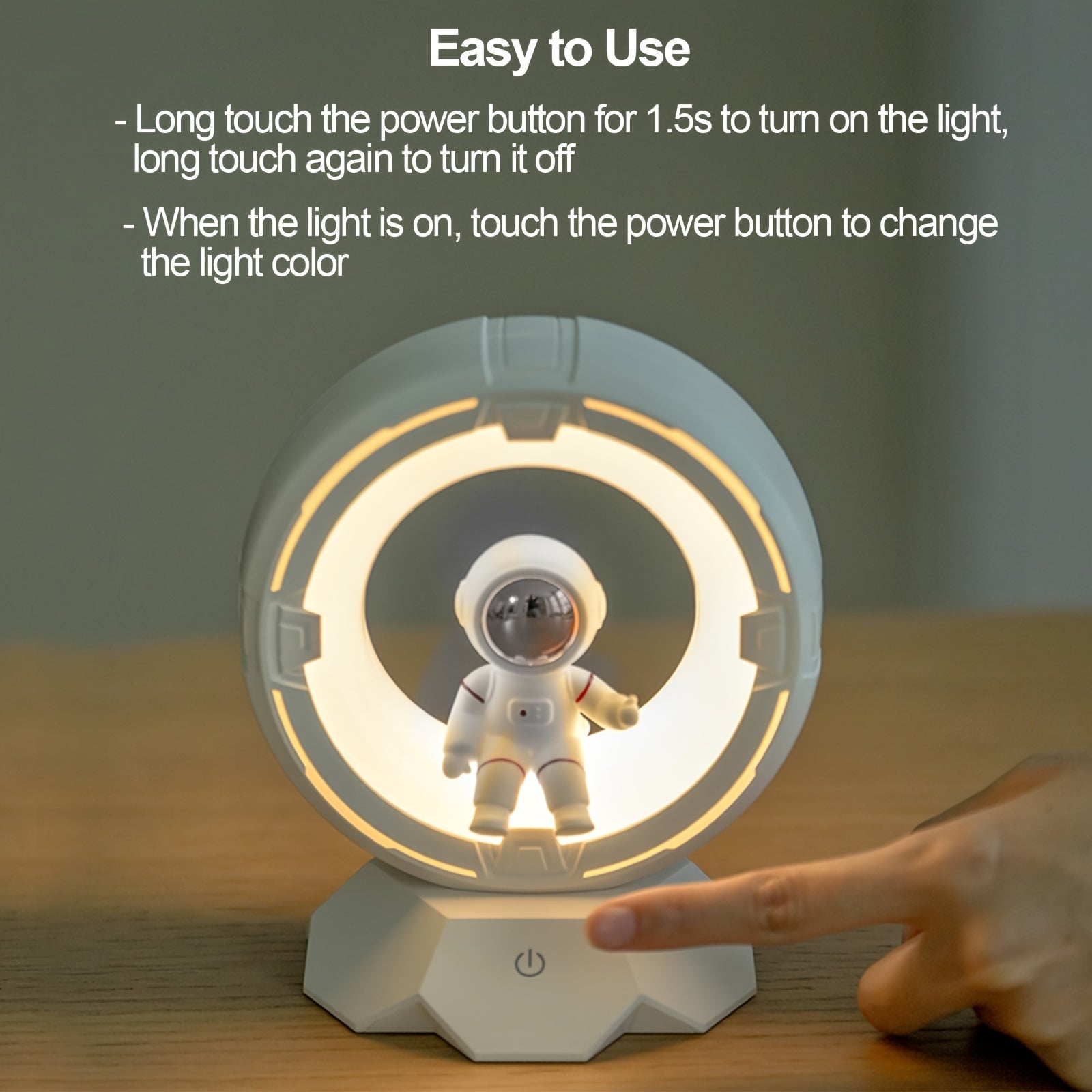 Modern Astronaut Night Light, Touch Control 3-Color LED Bedside Lamp, 4 Adjustable Brightness Levels,
