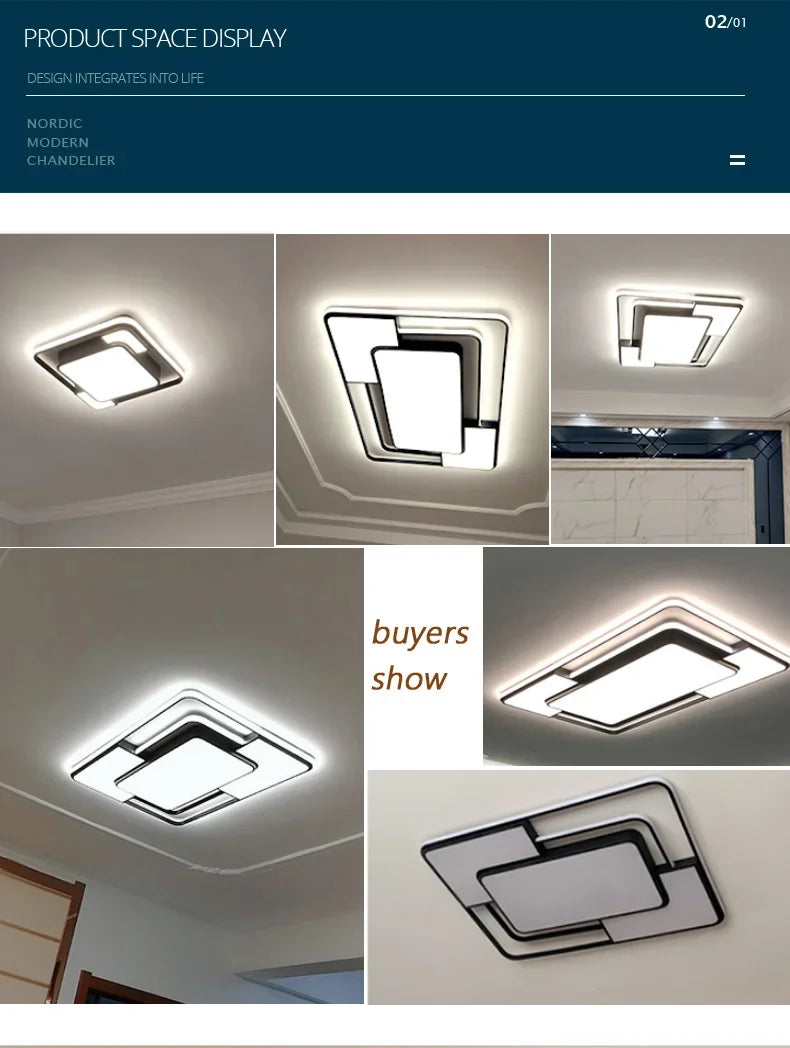 Modern LED Ceiling Lamp for Living Room Lustre Dining Bedroom Study Ceiling Light Nordic Square Ceiling Chandelier Light Fixture