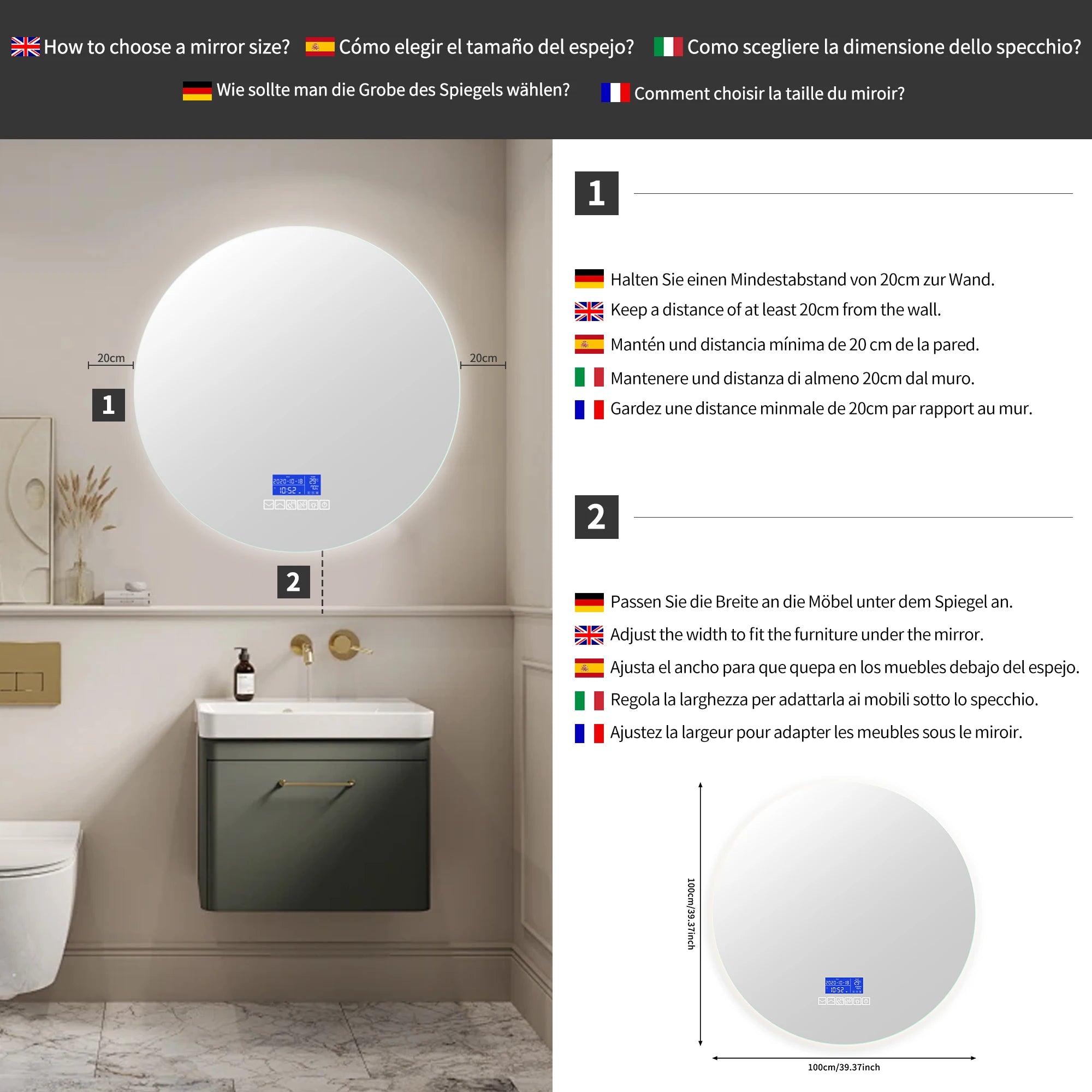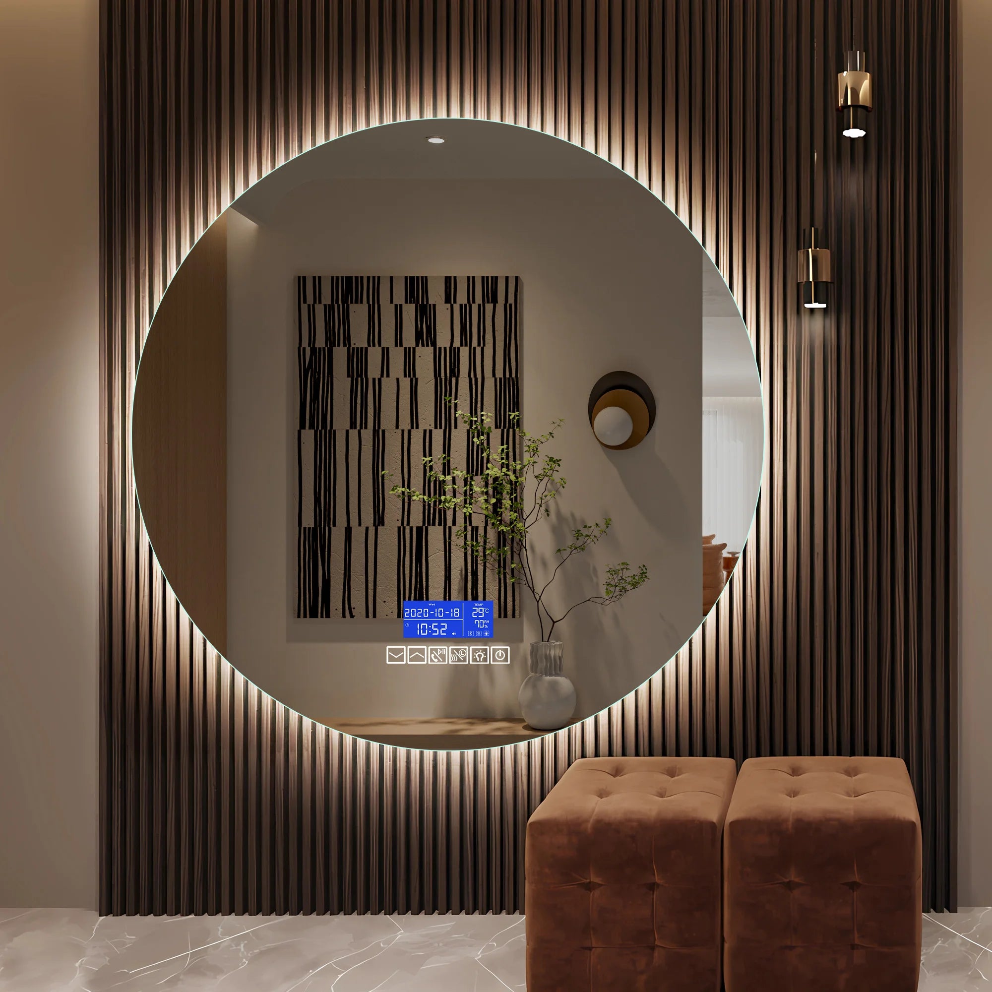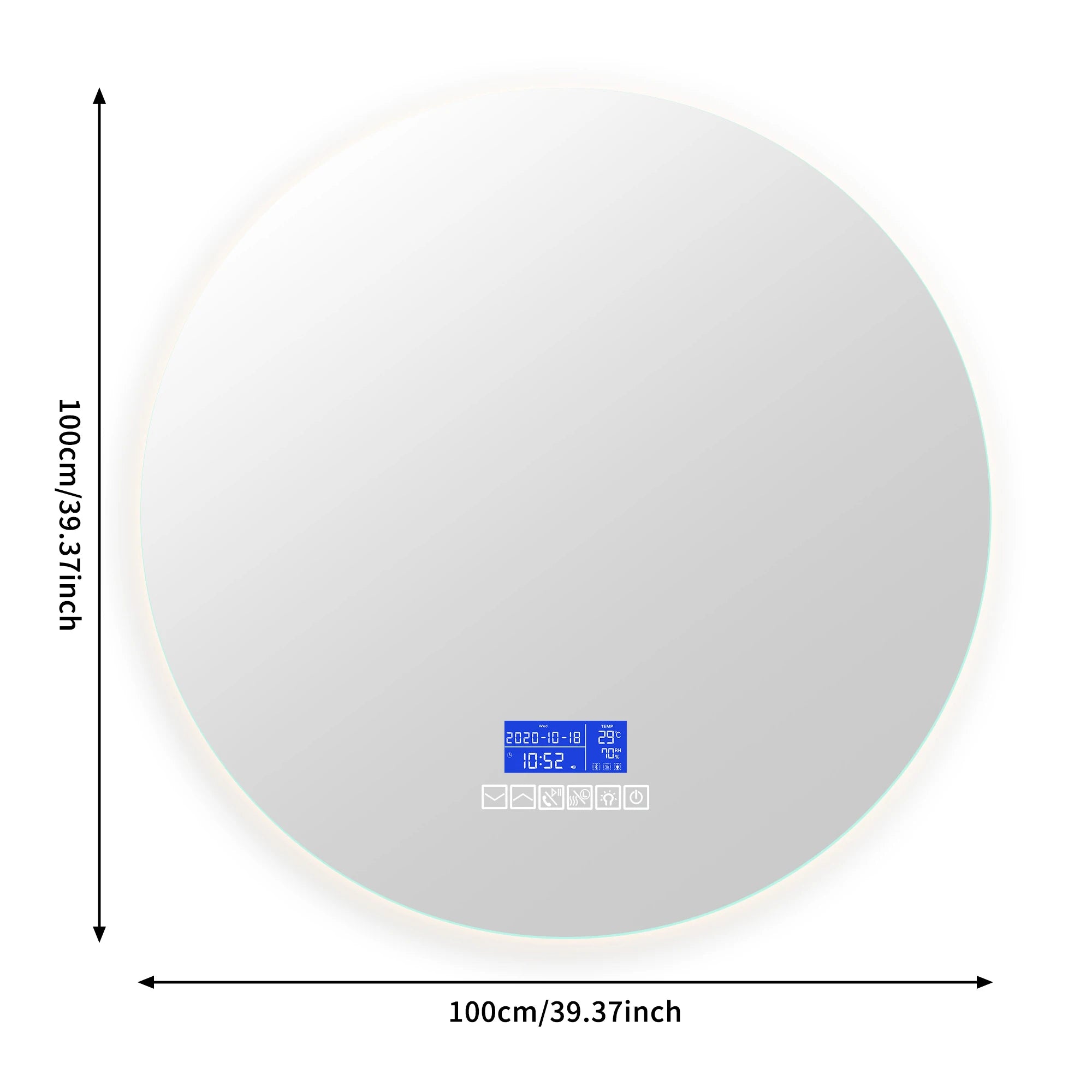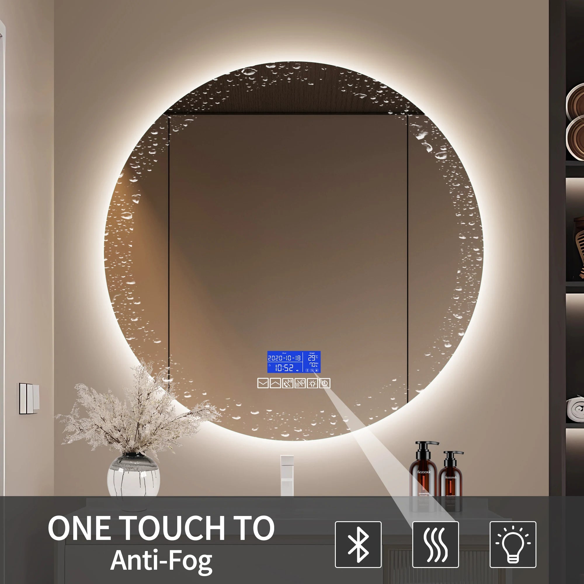 Multi Functional Circular Bathroom Mirror, Wall Mirror with Temperature Display, Defogging Function, and Brightness Adjustment