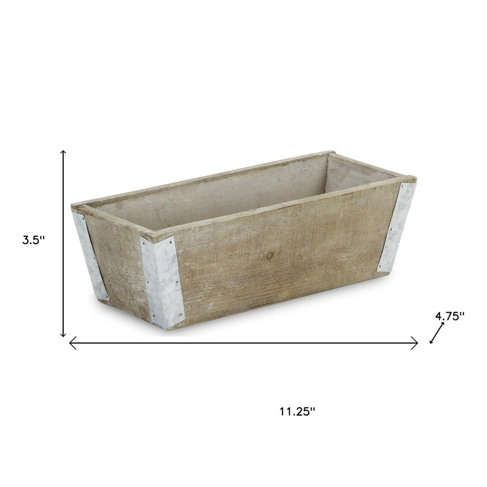 Natural And Silver Metal And Wood 90 Ounce Rectangular Distressed Planter Box