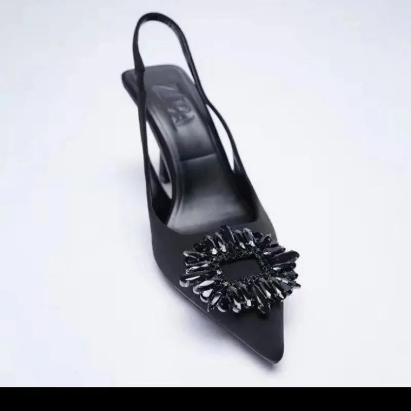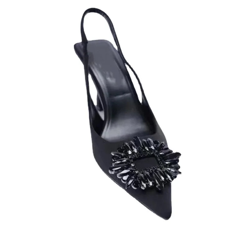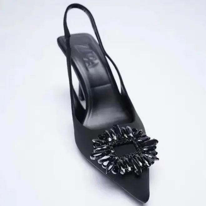 New High-heeled Sandal A Word Back Trip with Rhinestone Decorated Bao Head Sandal Pointed Single Shoe Shallow High Heels Women