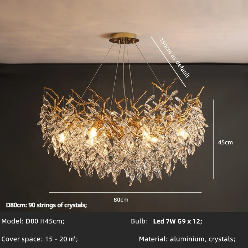 Nordic Luxury Living Room Branch Led Pendant Lights Lustre Crystal Art Hanging Lamp Modern Suspend Lamp Gold Chandelier Fixtures