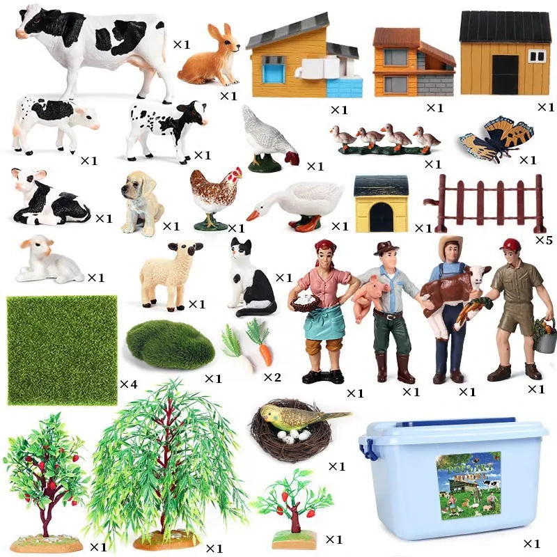 Farm House Model Action Figures Farmer Motorcycle Cow