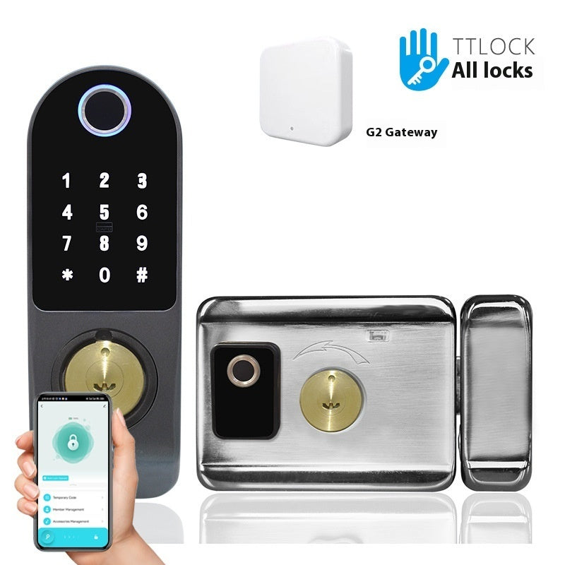 3 Style: double-headed fingerprint brush cartoon lock gateway = fingerprint password swipe key lock APP remote management,