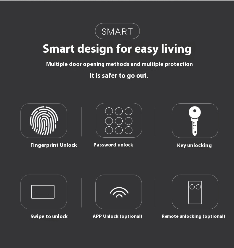 Style: fingerprint, password, with key, remote unlock
