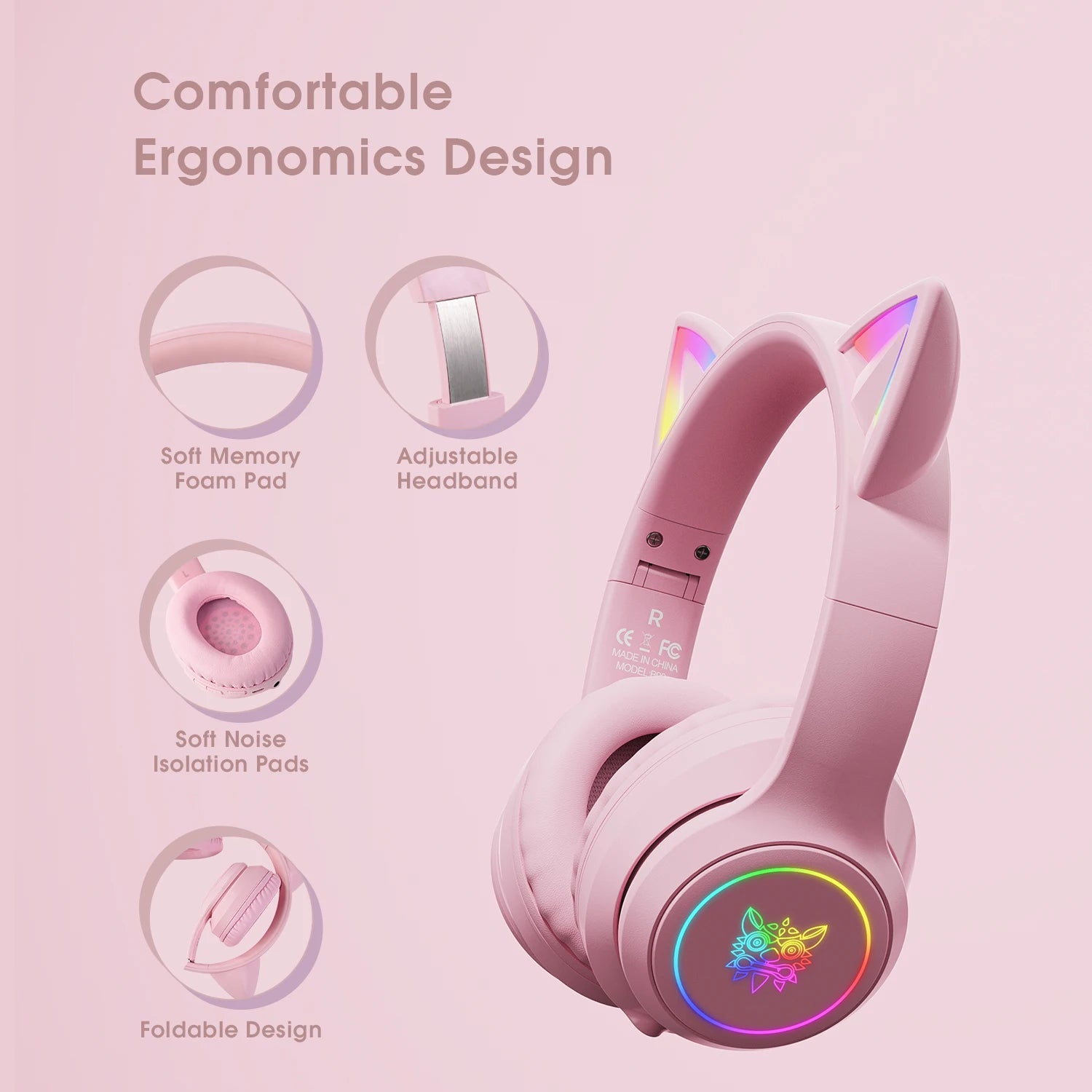 ONIKUMA Gaming Gaming Headset Bluetooth Headset Cat Ear Noise Cancellation High Sound Quality Cute
