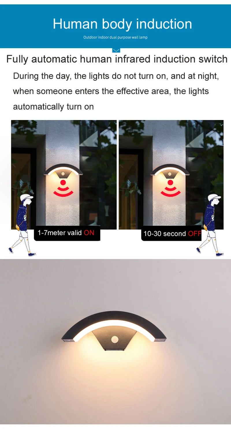 Outdoor Wall Light Waterproof IP65 Radar Motion Sensor Outdoor Lighting Porch Sconce Balcony Garden Outside Wall Lamp Vestibule